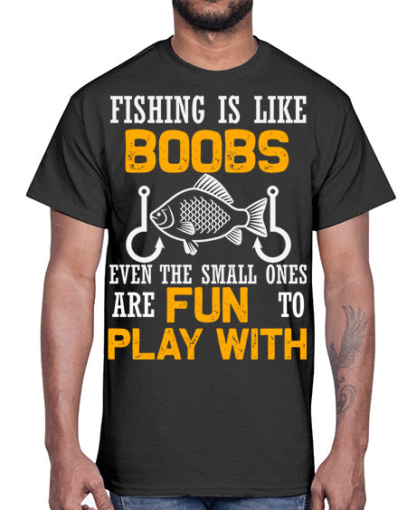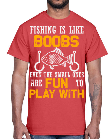 fishing is like boobs even the small ones are fun to play with 47#- shark-fish- Cotton Tee