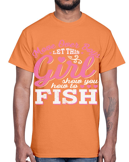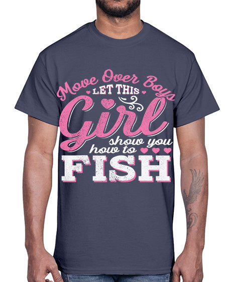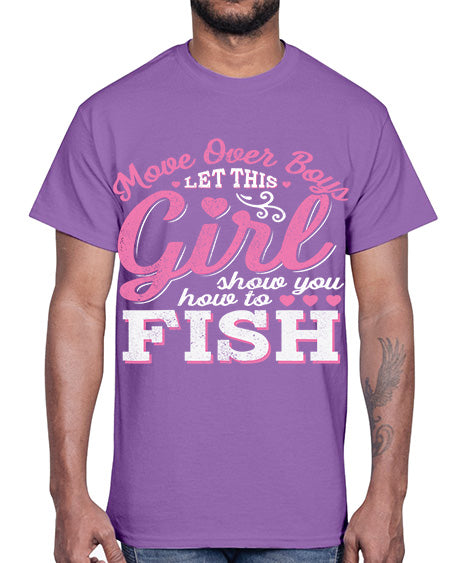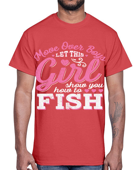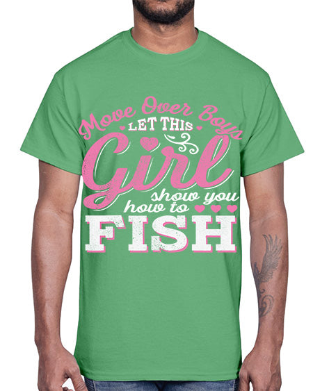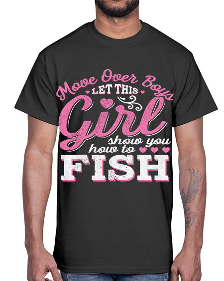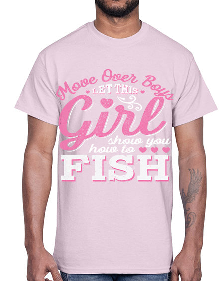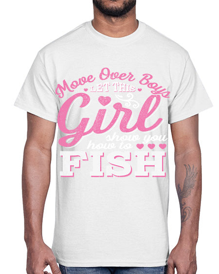 girl fishing 15#- shark-fish- Cotton Tee