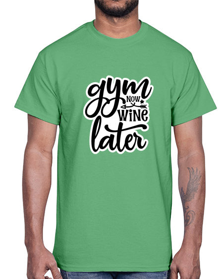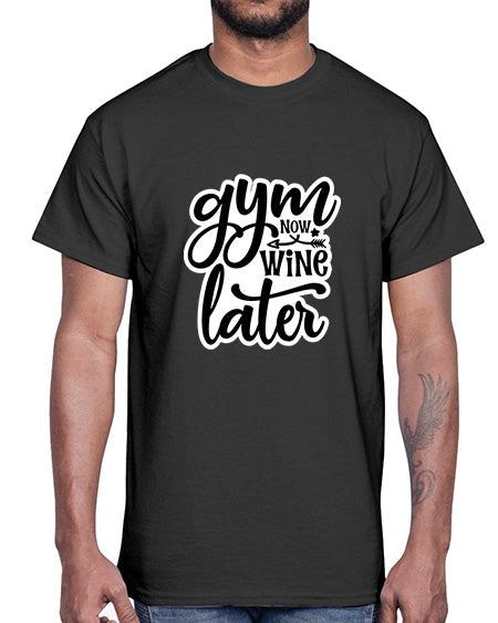 gym now wine later 247#- gym- Cotton Tee