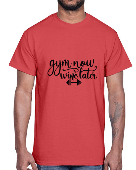 gym now wine later 28#- gym- Cotton Tee