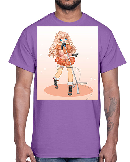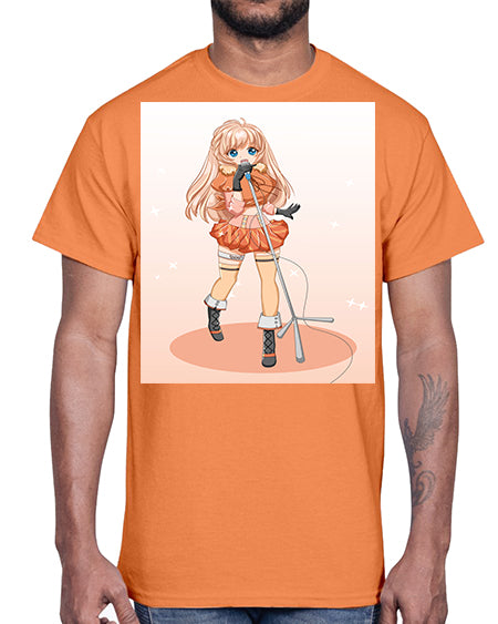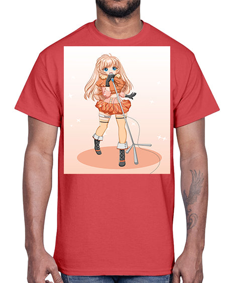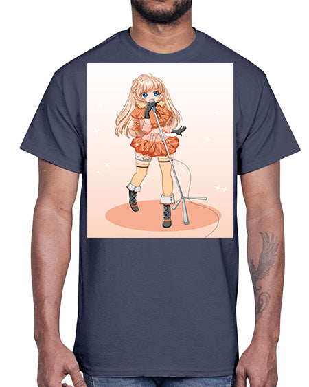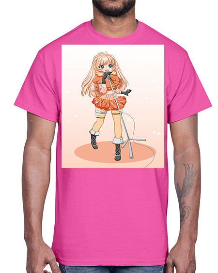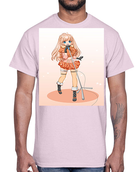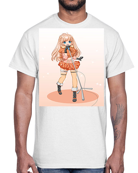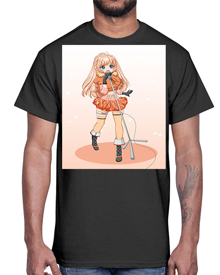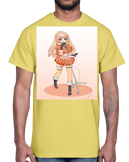 Happy and beautiful singer woman with microphone 160#- anime- Cotton Tee