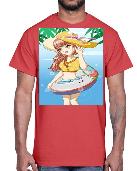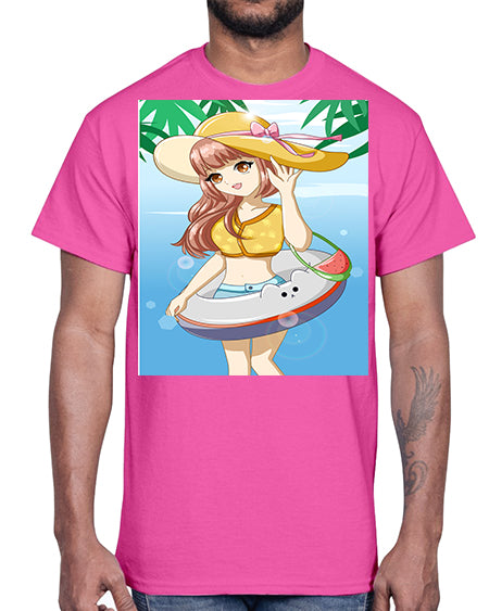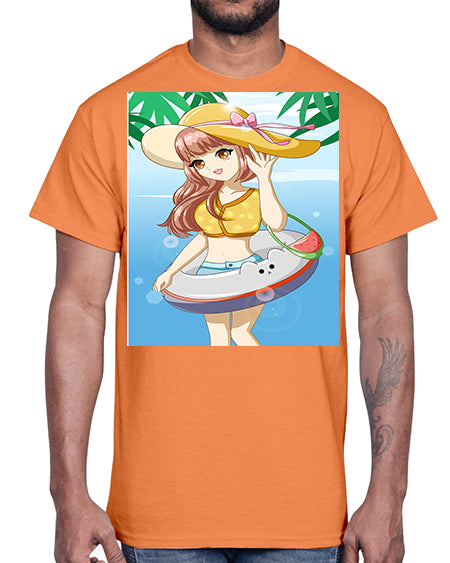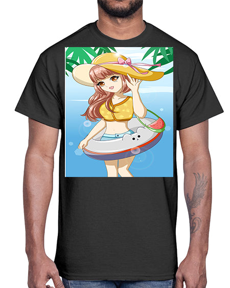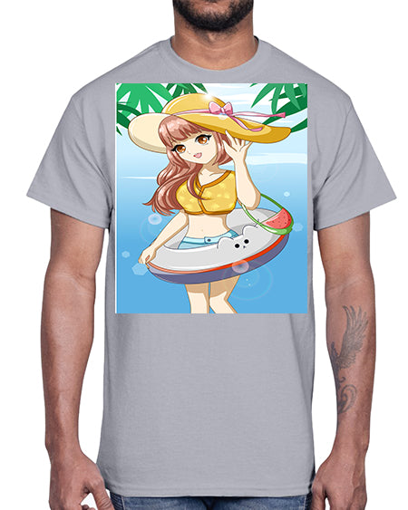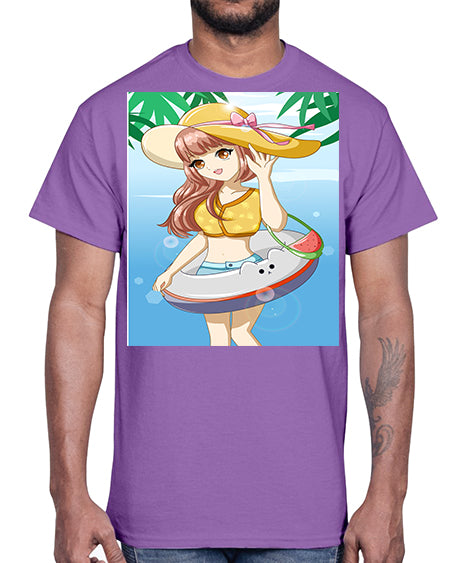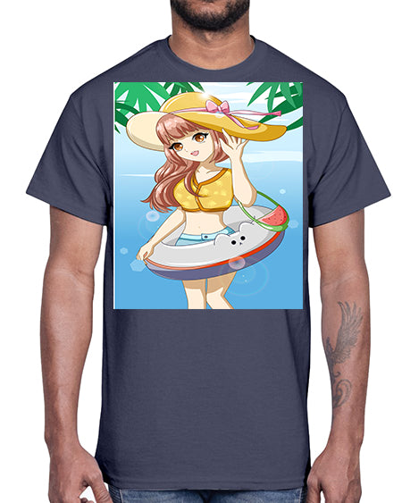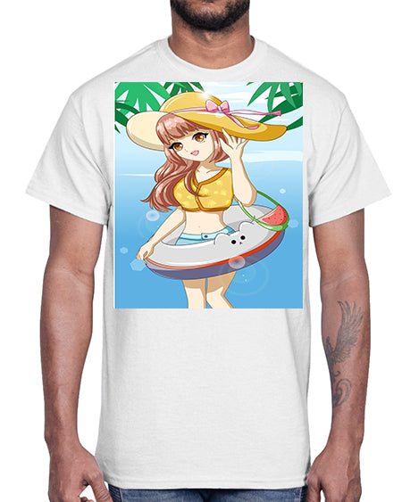 Happy and funny girl in beach with cute buoy in the summer 11#- anime- Cotton Tee