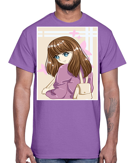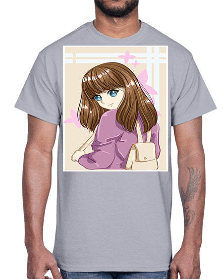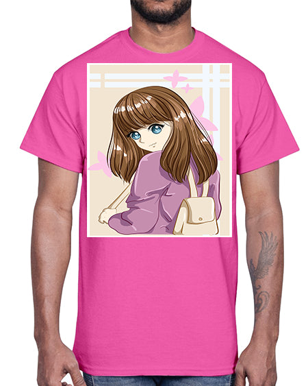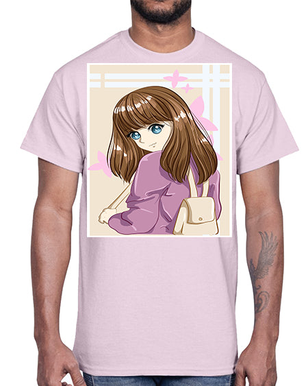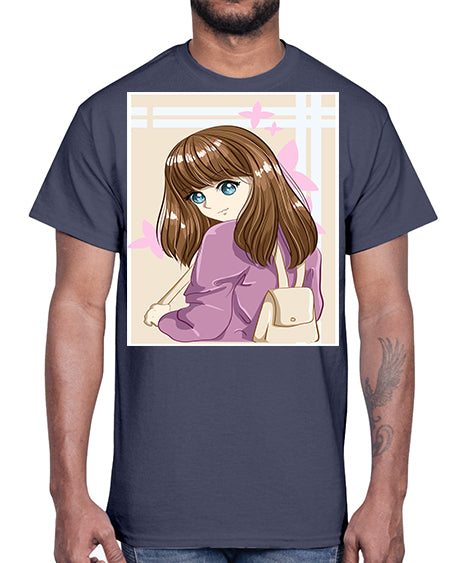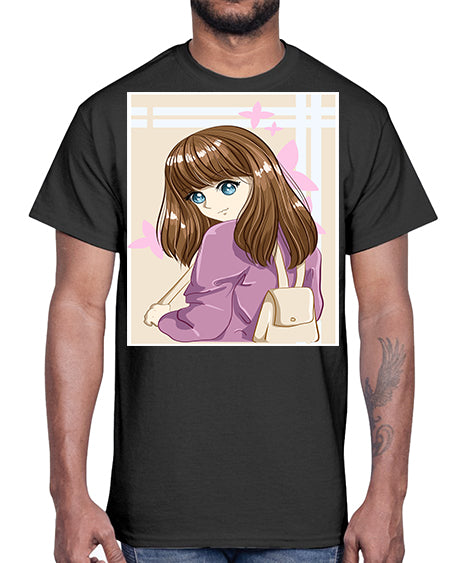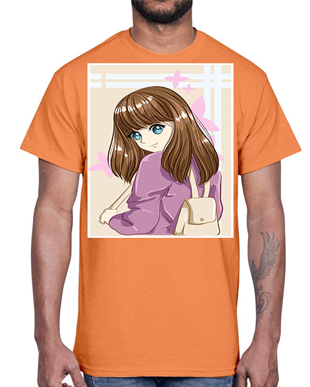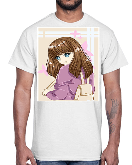 Happy and pretty college student carrying a bag 102#- anime- Cotton Tee