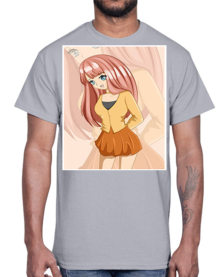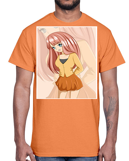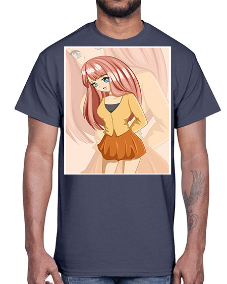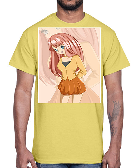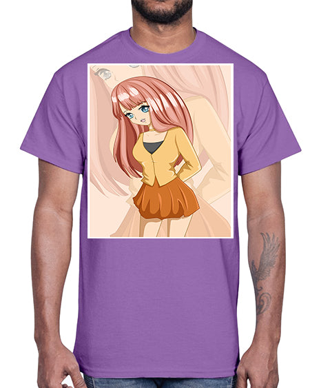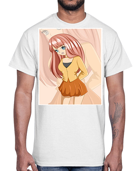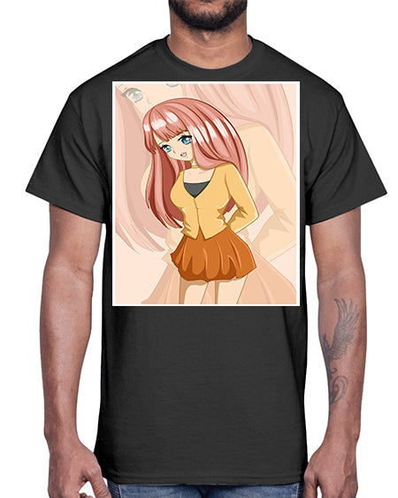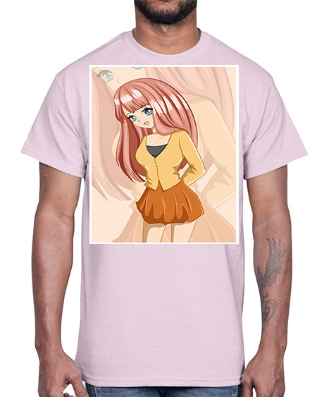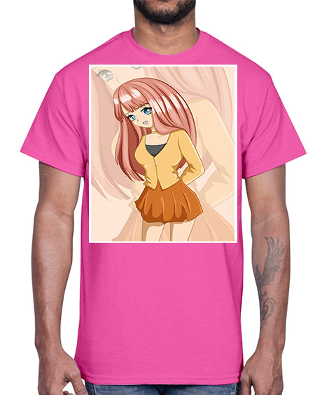 Happy beautiful and cute girl pink long hair 5#- anime- Cotton Tee