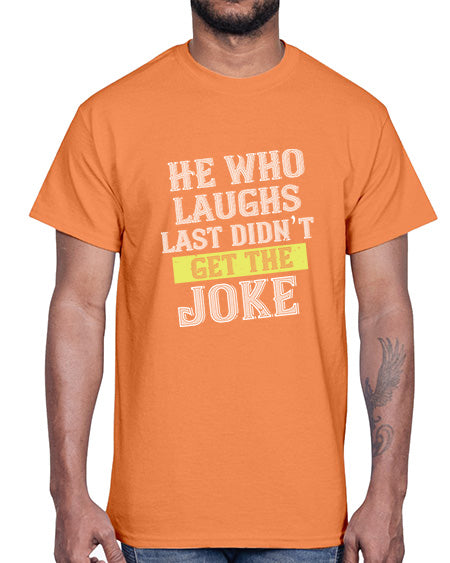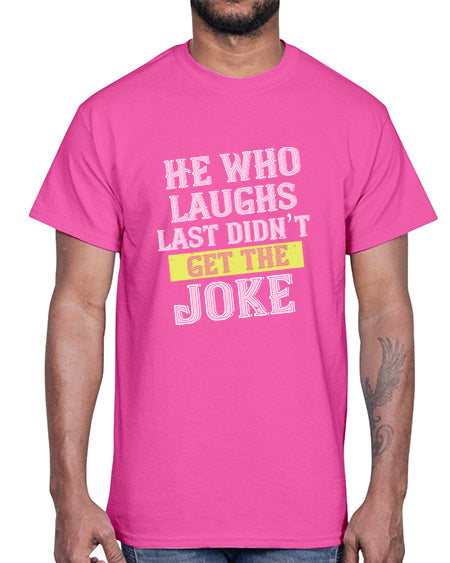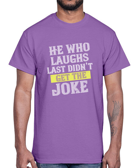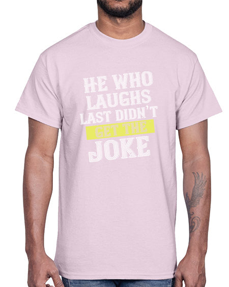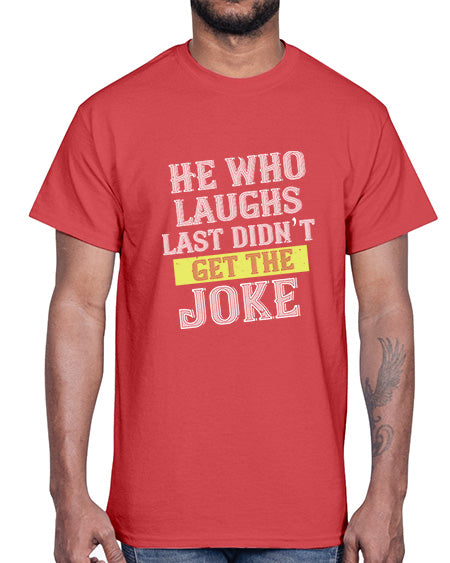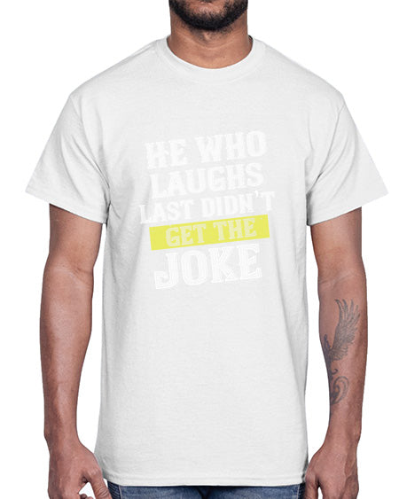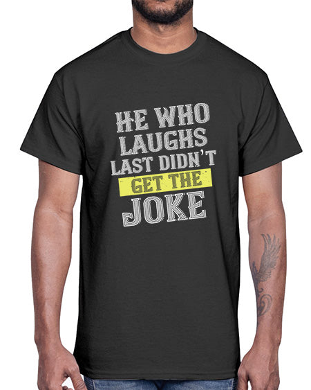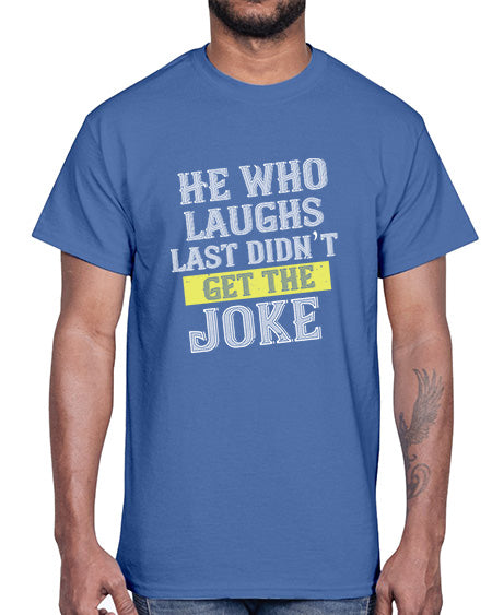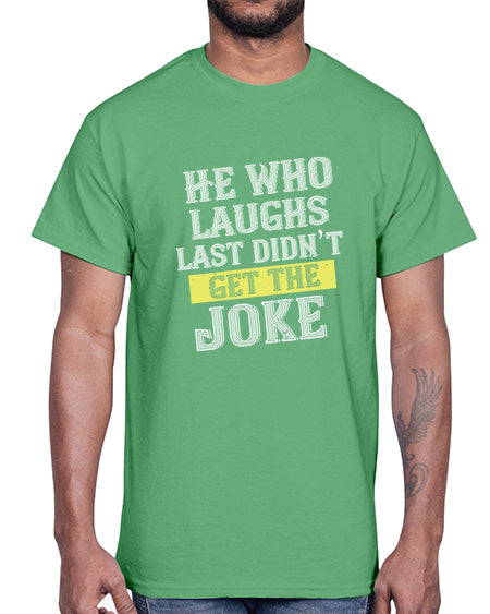 He who laughs last didnt get the joke 24#- funny- Cotton Tee