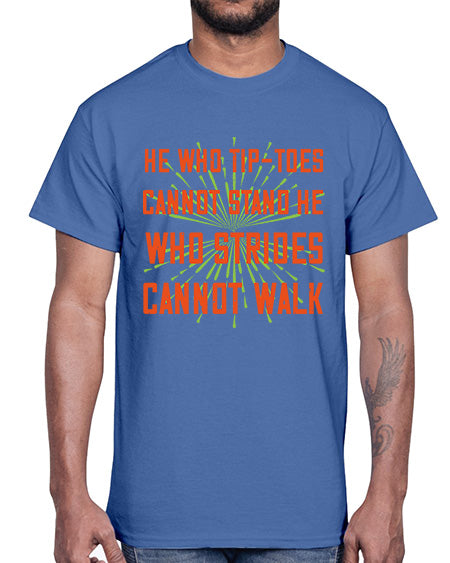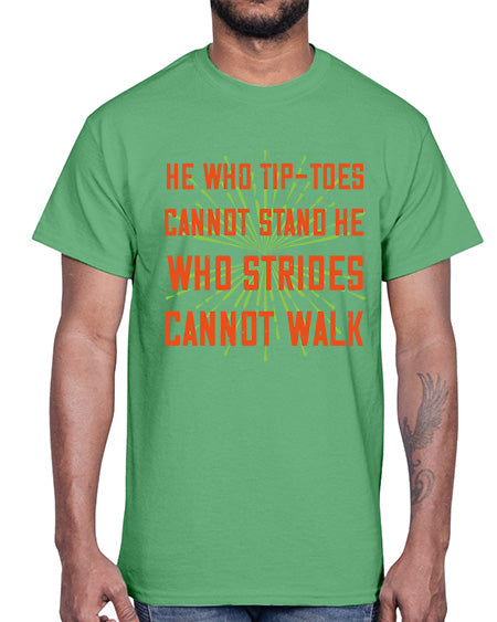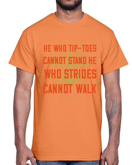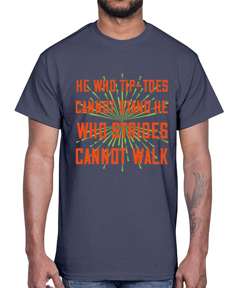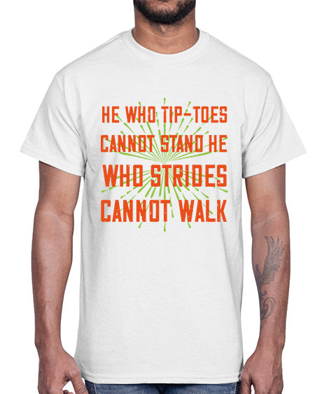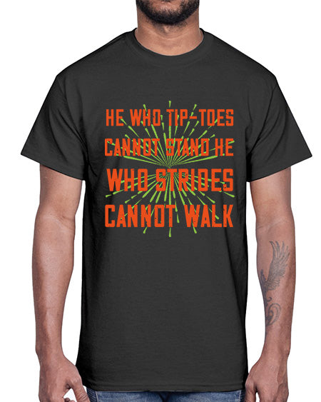 he who tiptoes cannot stand he who strides cannot walk 255#- walking- Cotton Tee