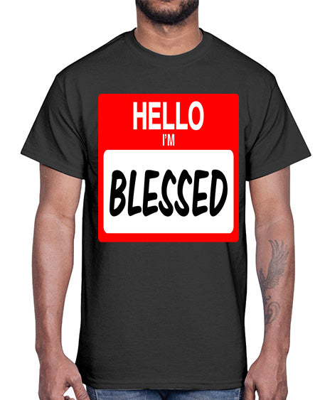 hello im blessed 133#- black words and phrases- Cotton Tee