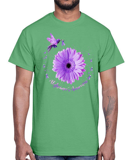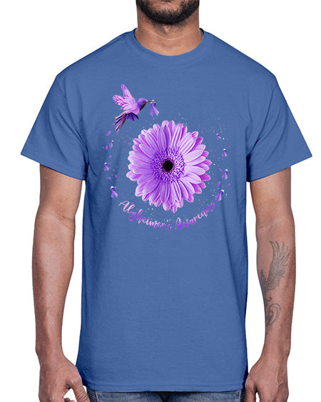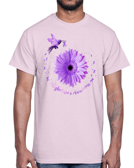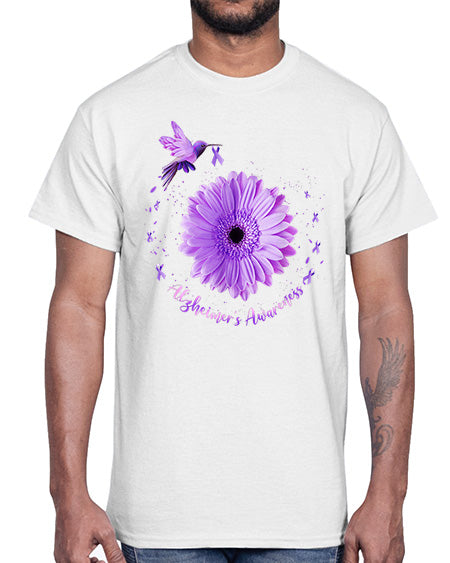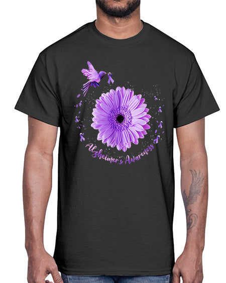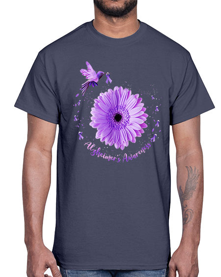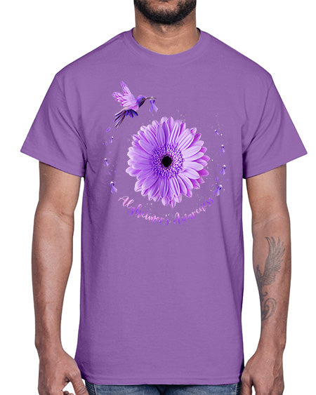 Hummingbird Sunflower Purple Ribbon Alzheimers Awareness 167#- alzheimers- Cotton Tee