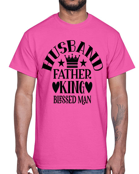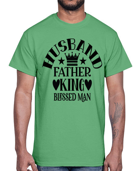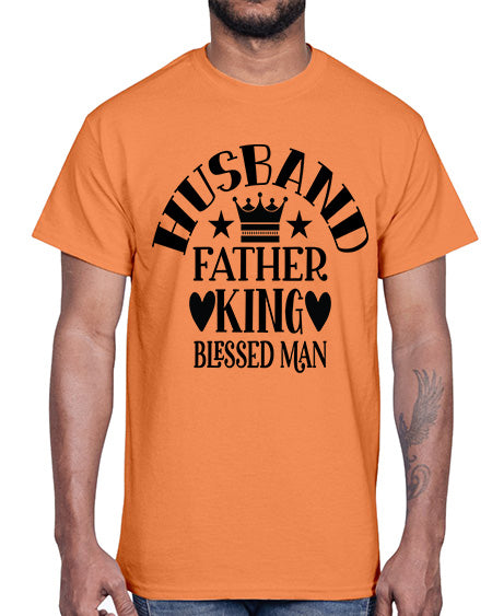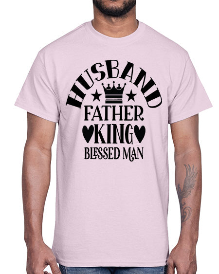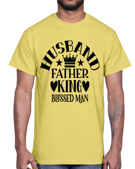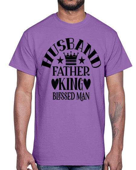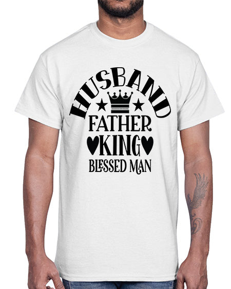 Husband father king blessed man 8#- black words and phrases- Cotton Tee