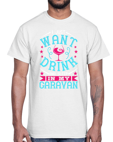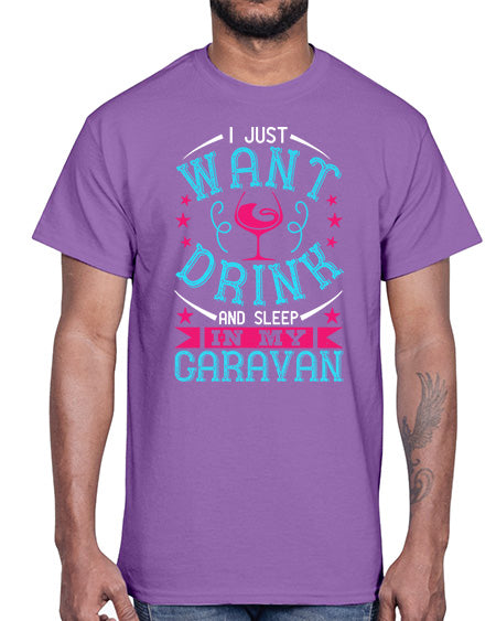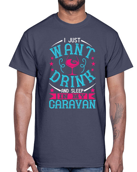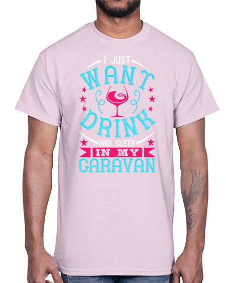 i just want drink wine and sleep in my caravan 220#- wine- Cotton Tee