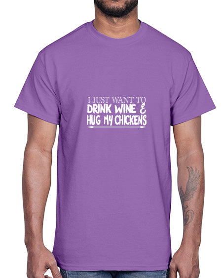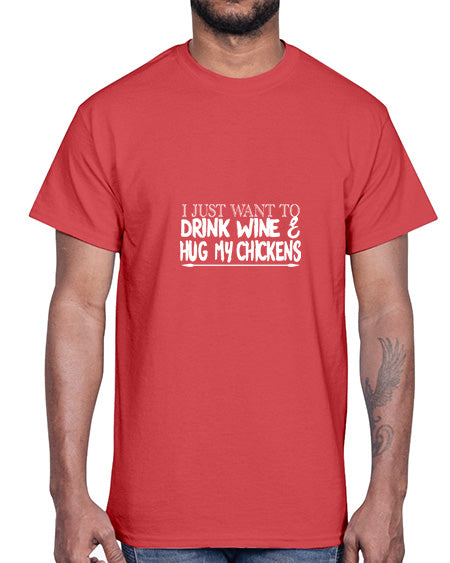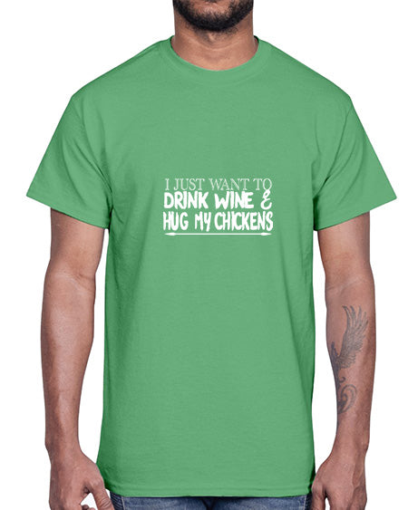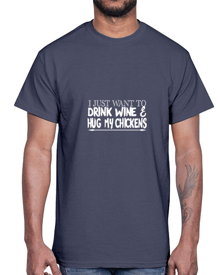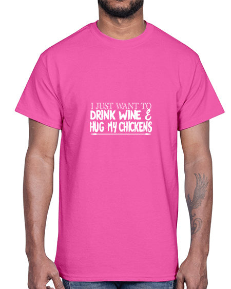 i just want to drink wine hug my chicknes 1114#- wine- Cotton Tee