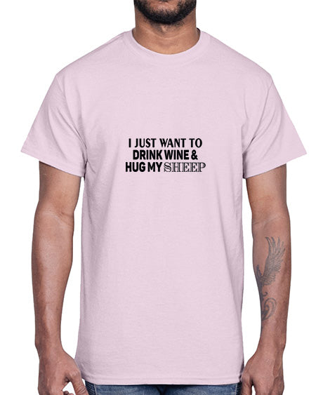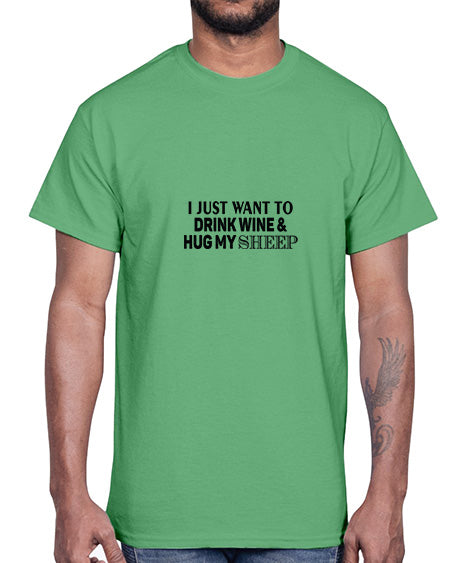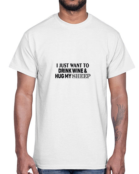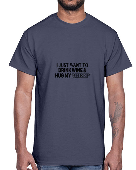 i just want to drink wine hug my sheep 1117#- wine- Cotton Tee