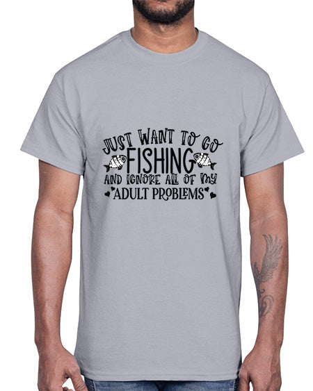 I Just Want To Go Fishing and ignore all of my adult problems 36#- funny- Cotton Tee