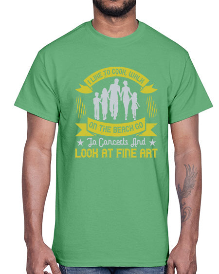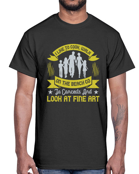 i like to cook walk on the beach go to concerts and look at fine art 292#- walking- Cotton Tee