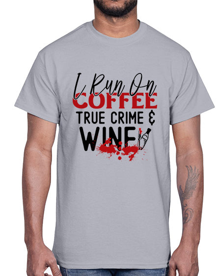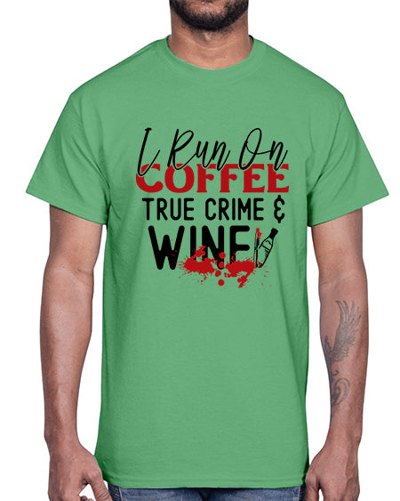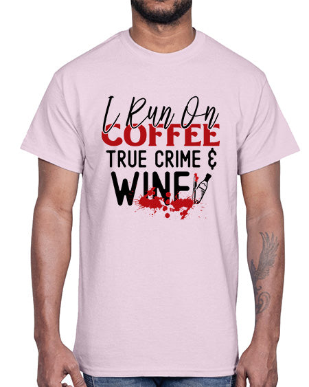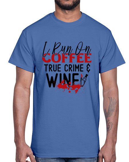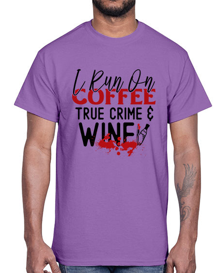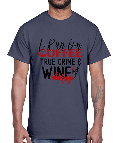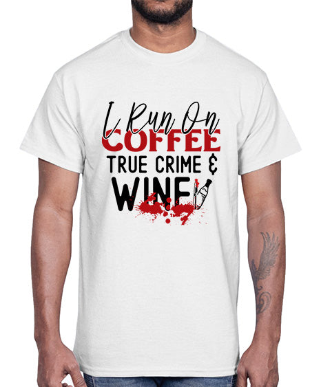 i run on coffee true crime wine 1166#- wine- Cotton Tee