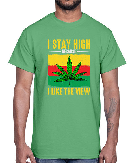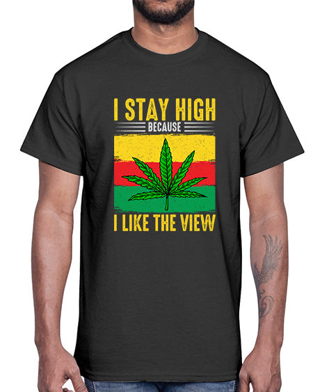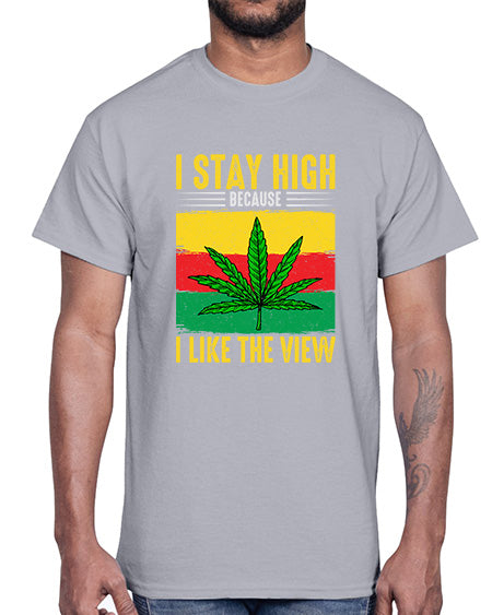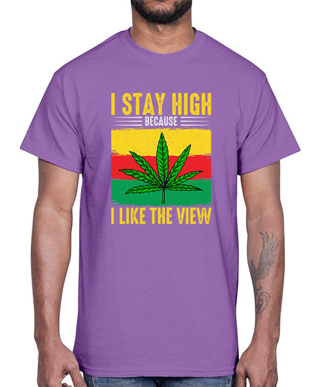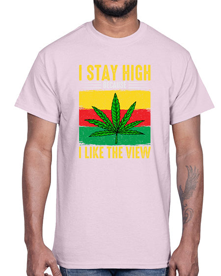 i stay high because i like the view 600#- marijuana- Cotton Tee