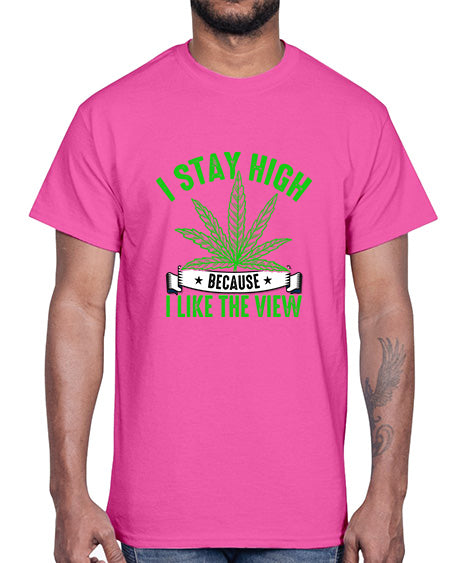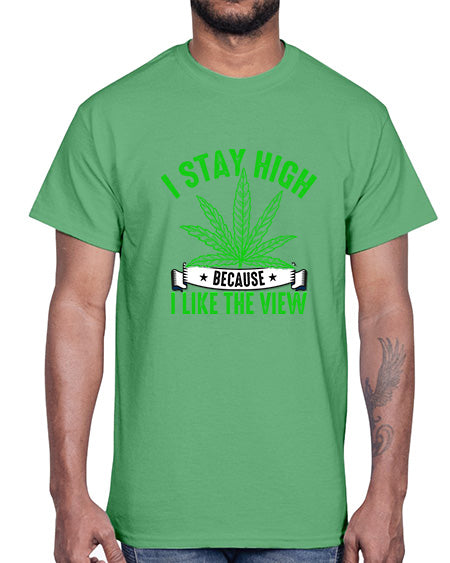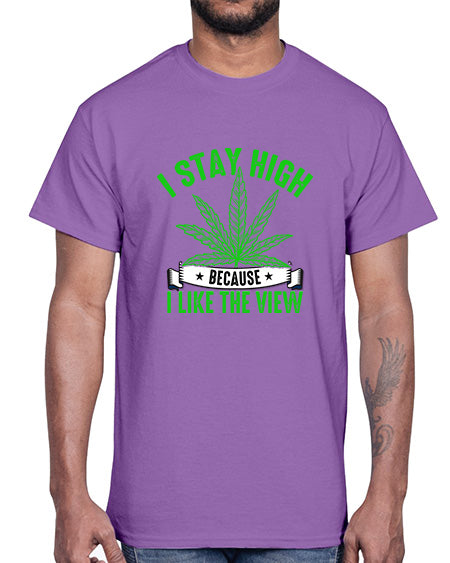 i stay high because i like the view 601#- marijuana- Cotton Tee