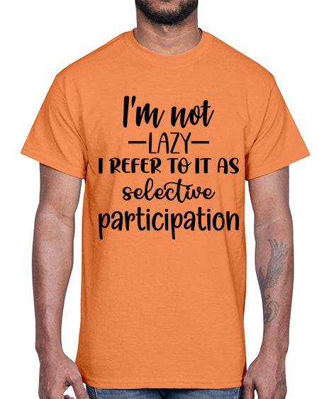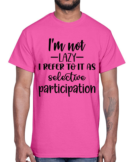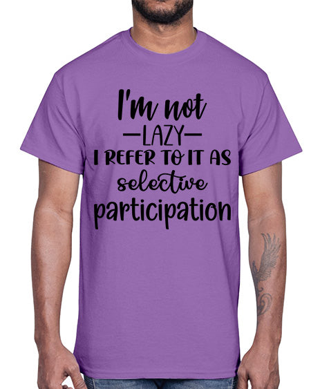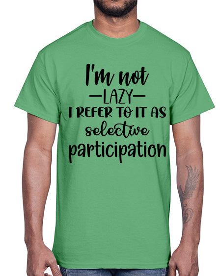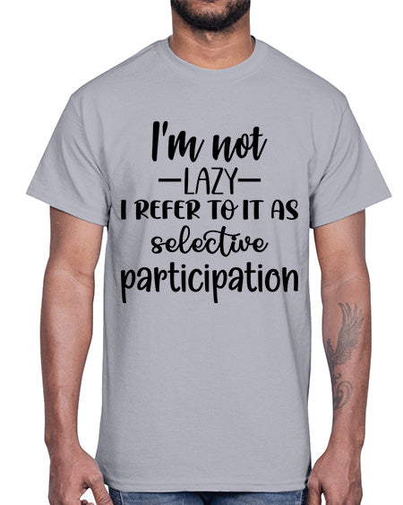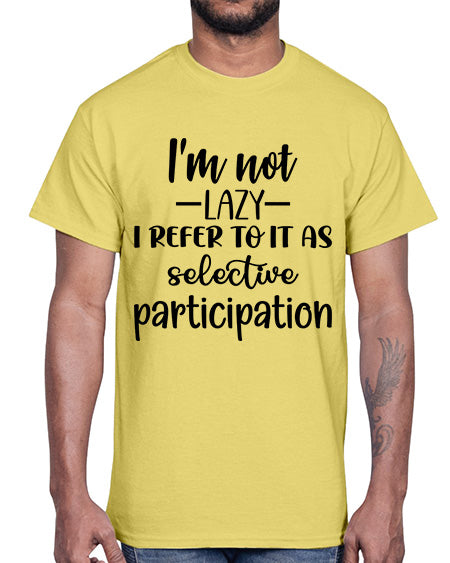 im not lazy i refer to it as selective participation 645#- funny- Cotton Tee