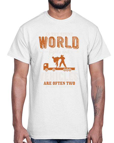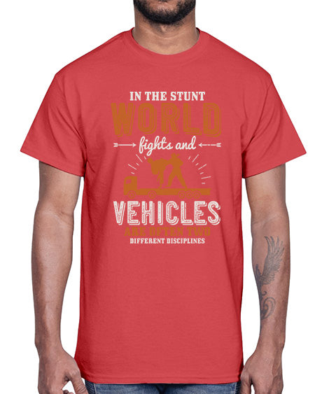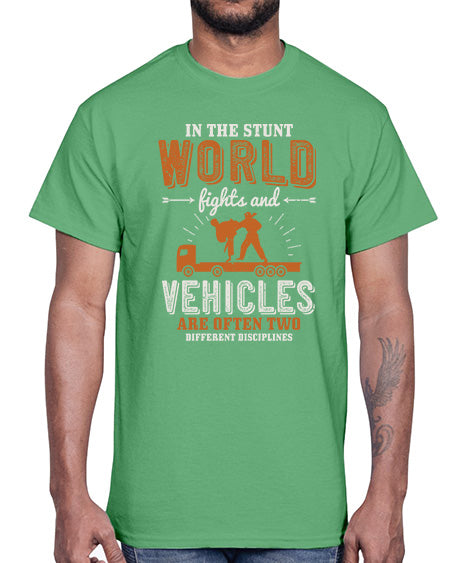 In the stunt world fights and vehicles are often two different disciplines 5#- car general- Cotton Tee