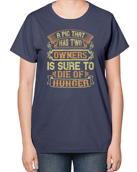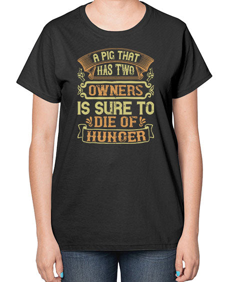 A pig that has two owners is sure to die of hunger Style 101# - pig- Ladies T-Shirt