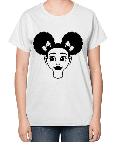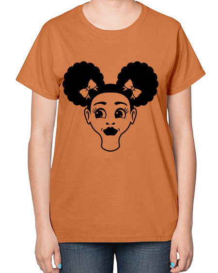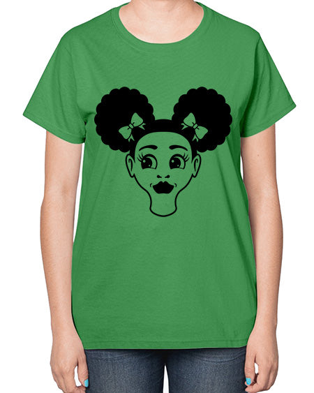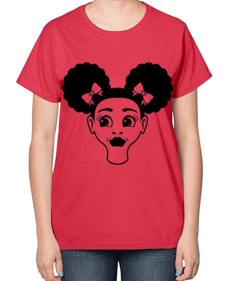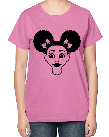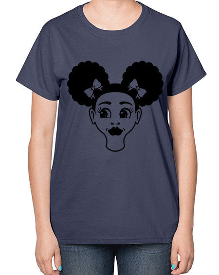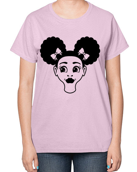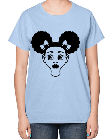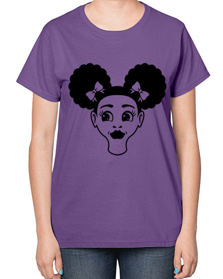 afro puffs girl face 73# - black girls or women- Ladies T-Shirt
