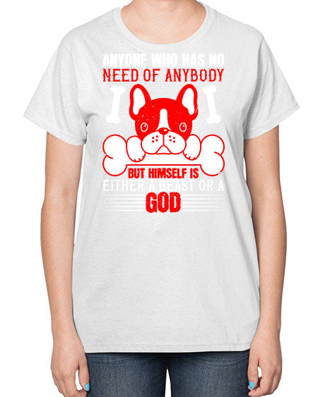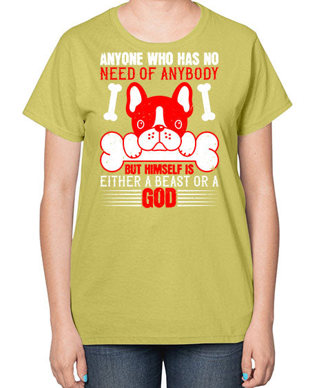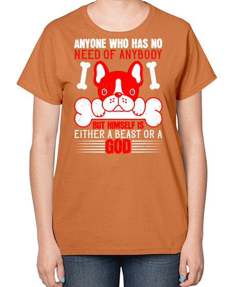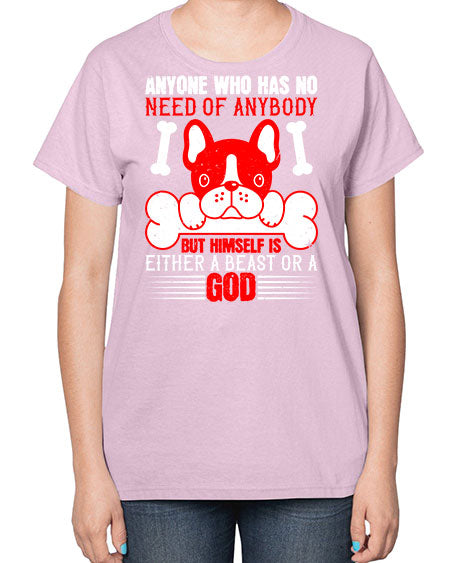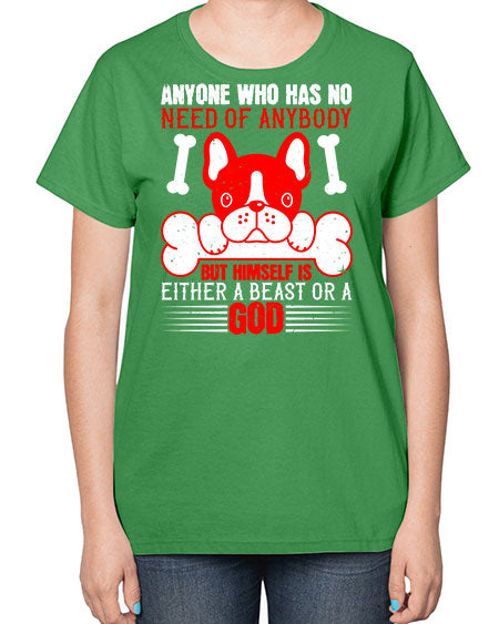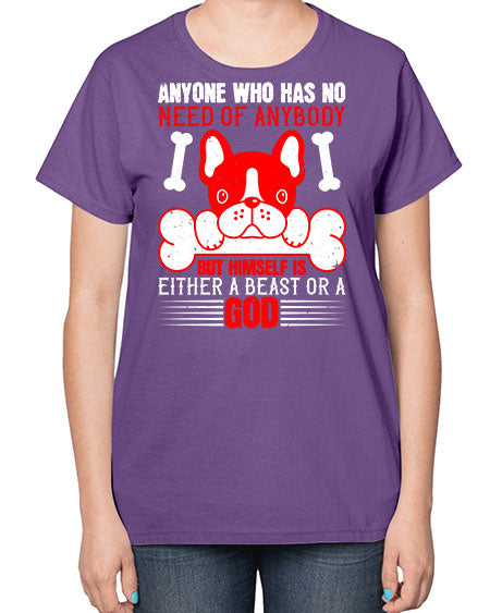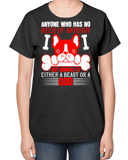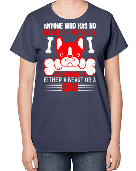 Anyone who has no need of anybody but himself is either a beast or a God Style 132# - dogs- Ladies T-Shirt