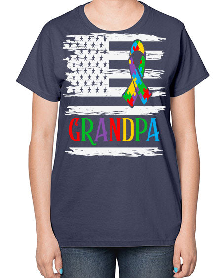 autism grandpa american flag 39# - autism- Ladies T-Shirt