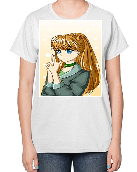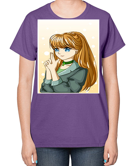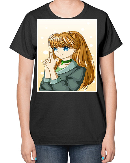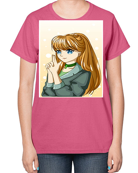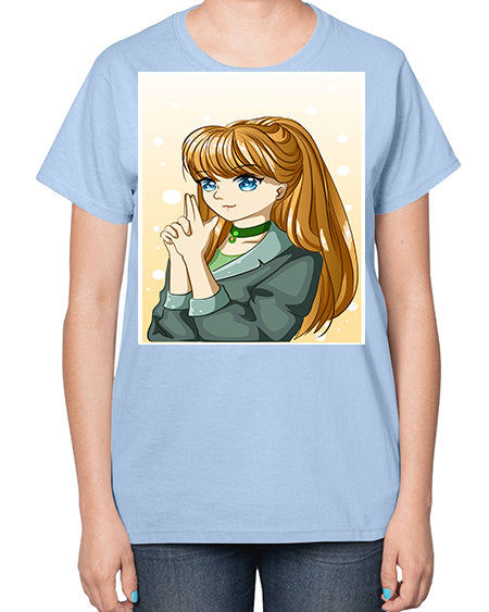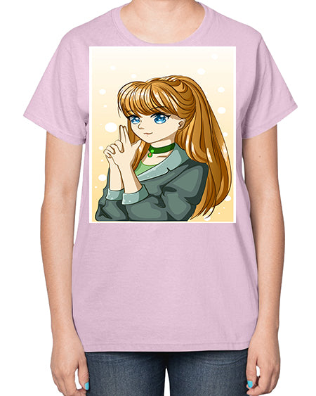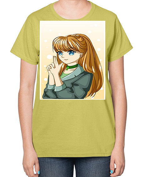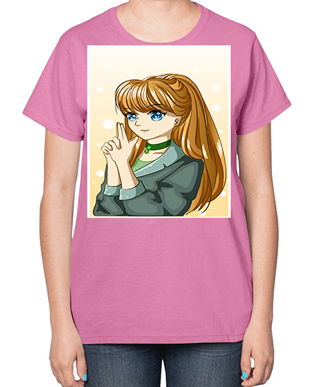 Beautiful and cool girl with long blonde hair 152# - anime- Ladies T-Shirt