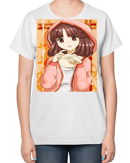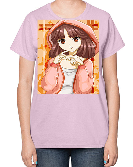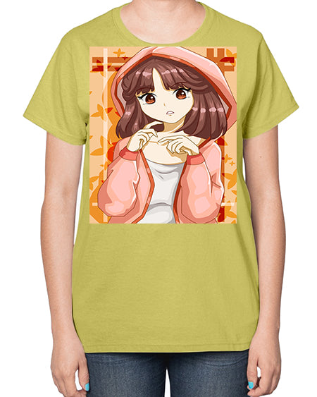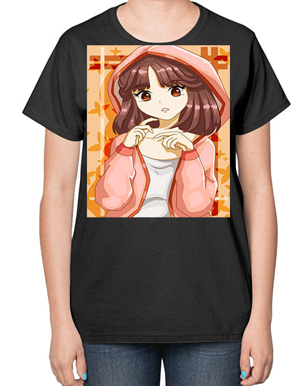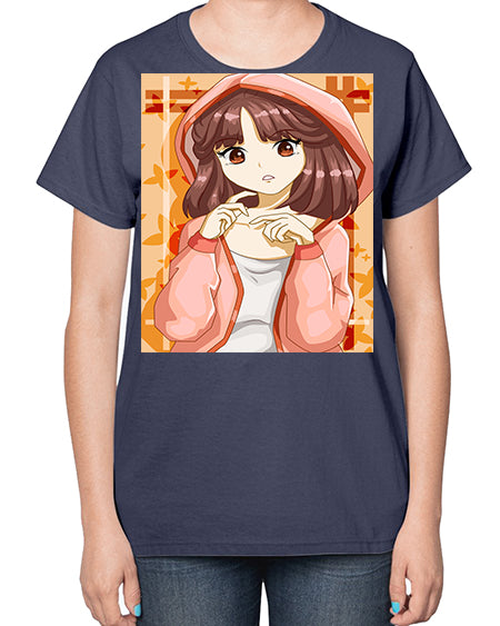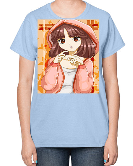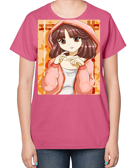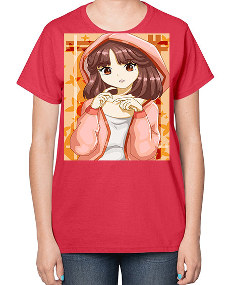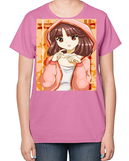 Beautiful and cute girl brown hair with jacket 81# - anime- Ladies T-Shirt