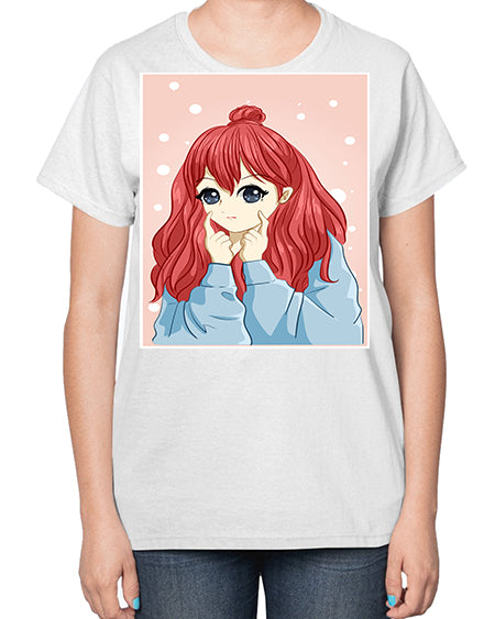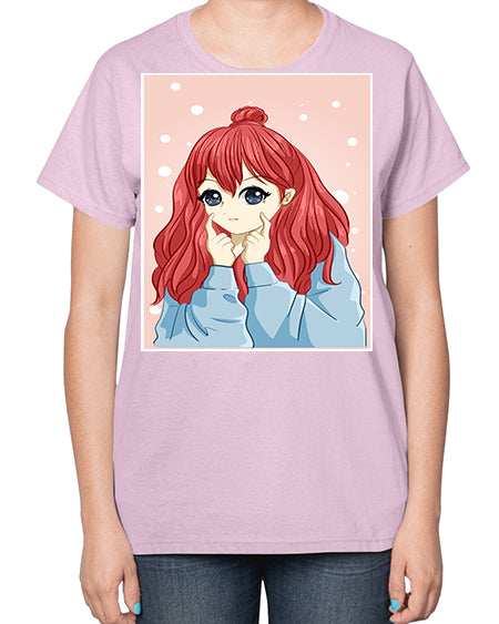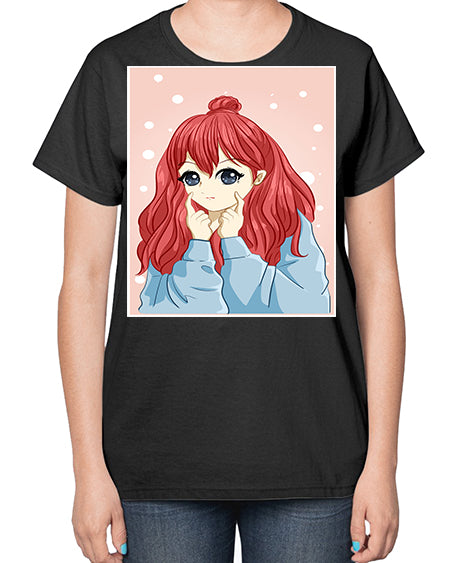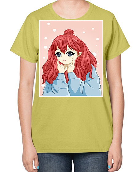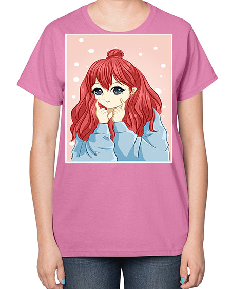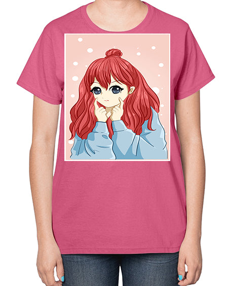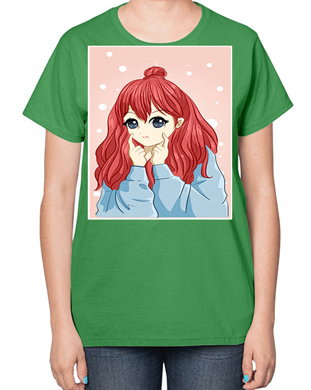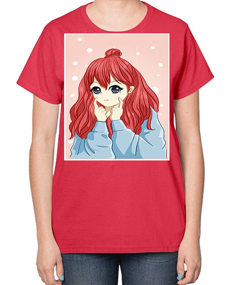 Beautiful and cute girl long red hair with jacket 150# - anime- Ladies T-Shirt