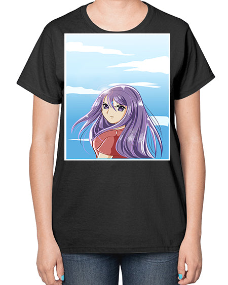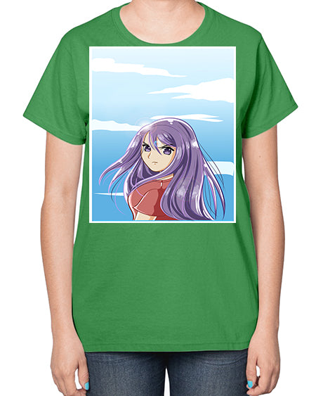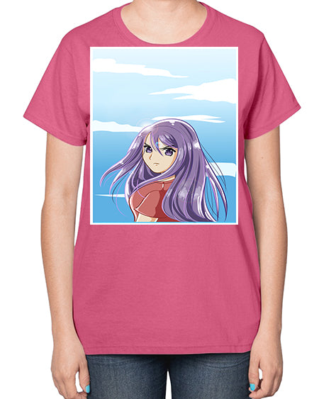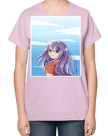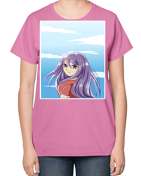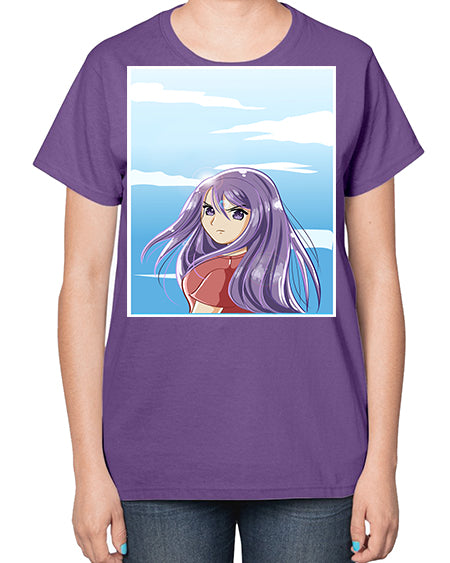 Beautiful and cute girl purple long hair in the summer with 109# - anime- Ladies T-Shirt
