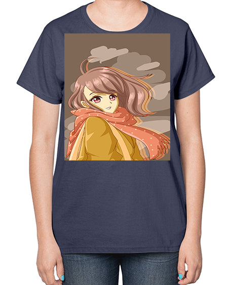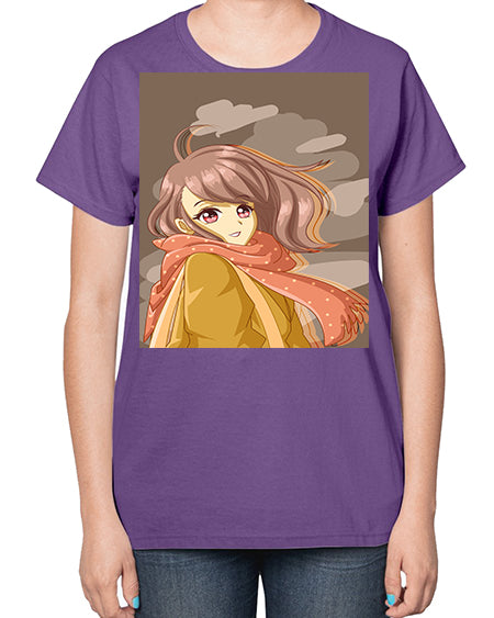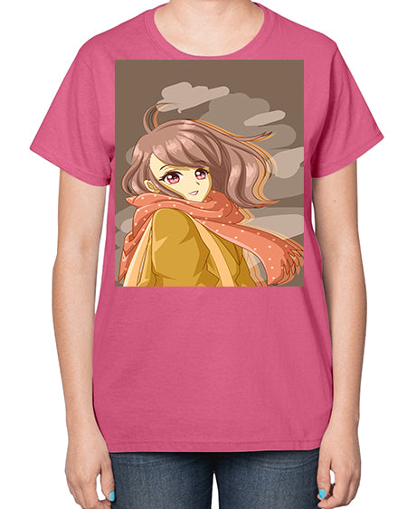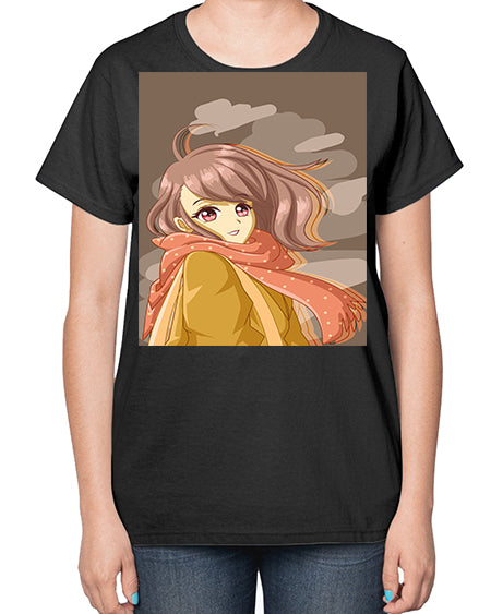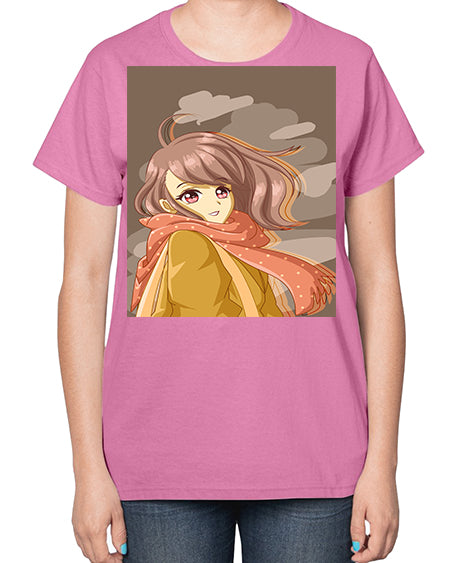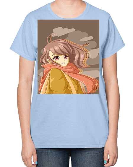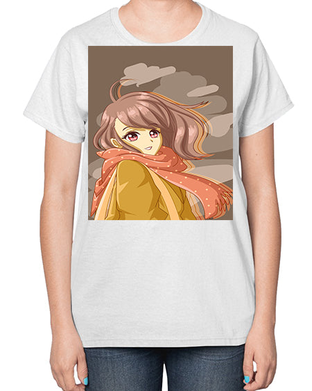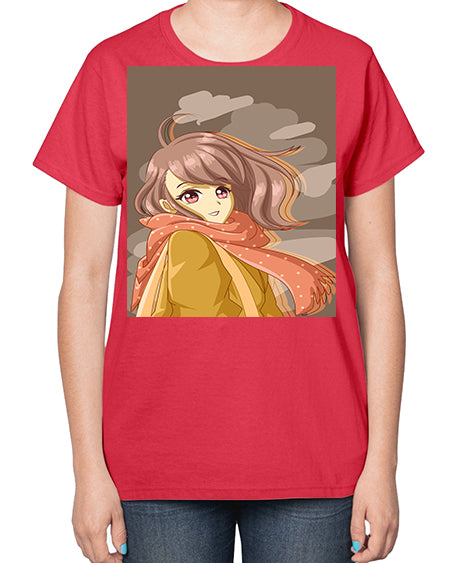 Beautiful and cute girl with scarf 91# - anime- Ladies T-Shirt