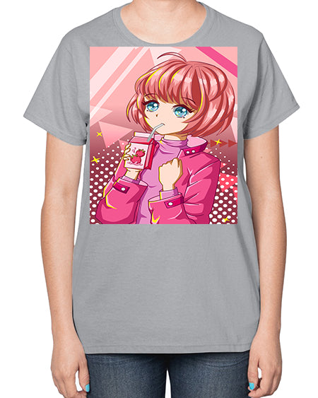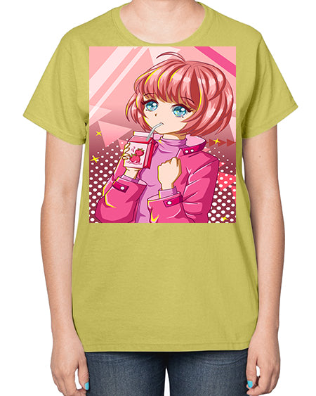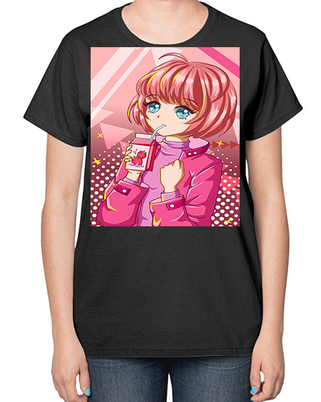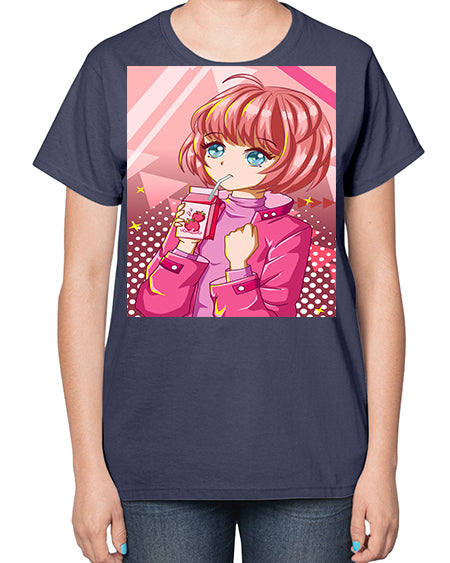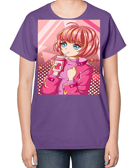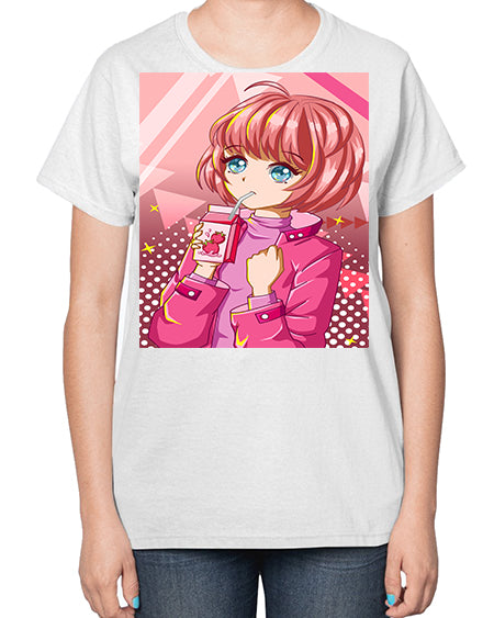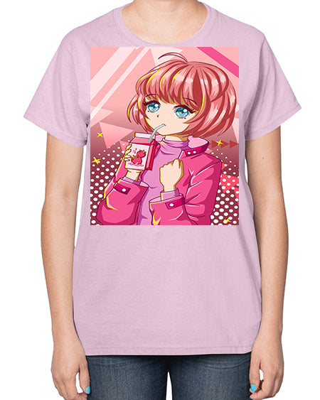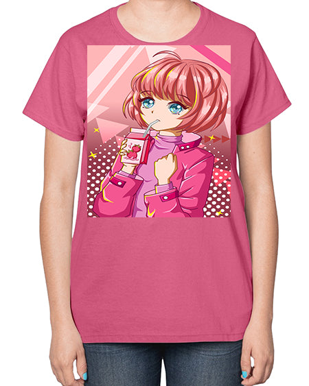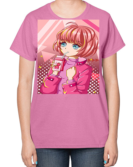 Beautiful and cute girl with strawberry milk 76# - anime- Ladies T-Shirt