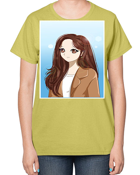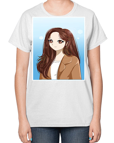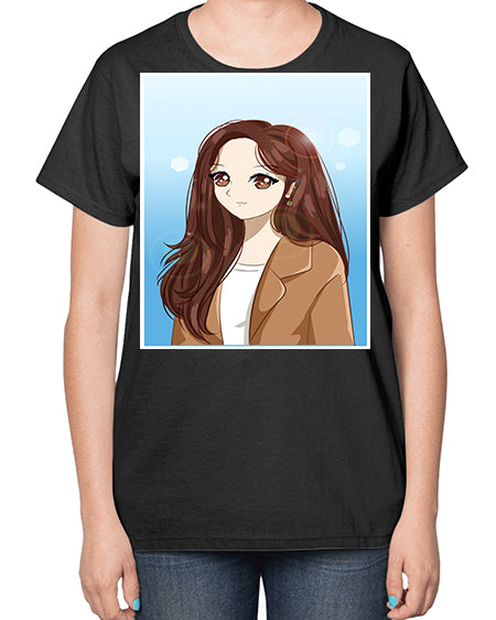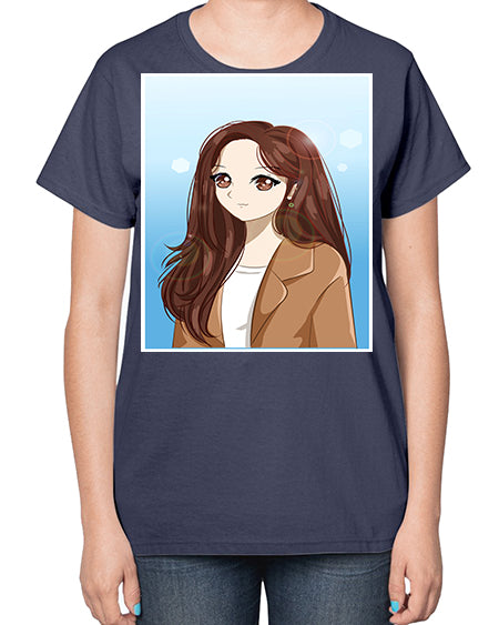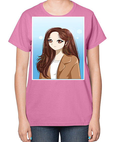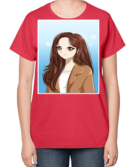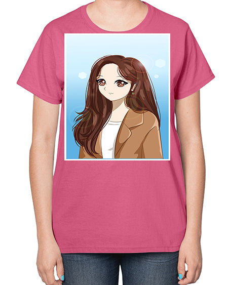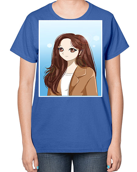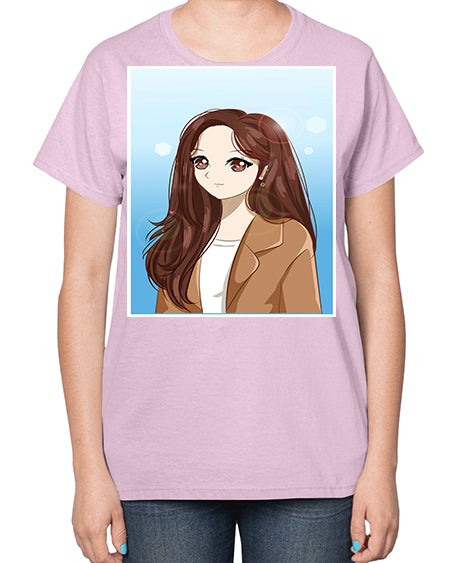 Beautiful and happy girl long hair with suit 94# - anime- Ladies T-Shirt