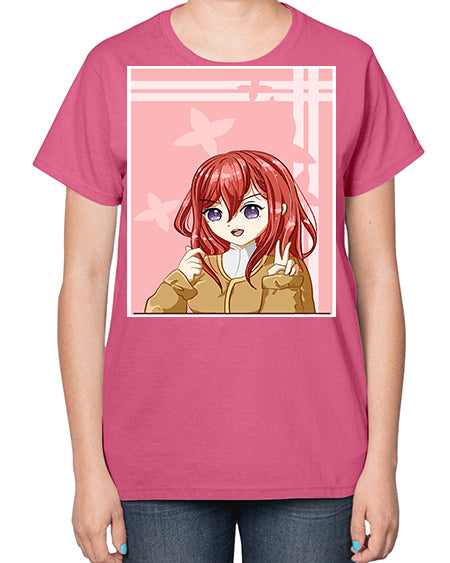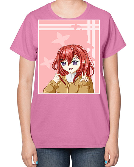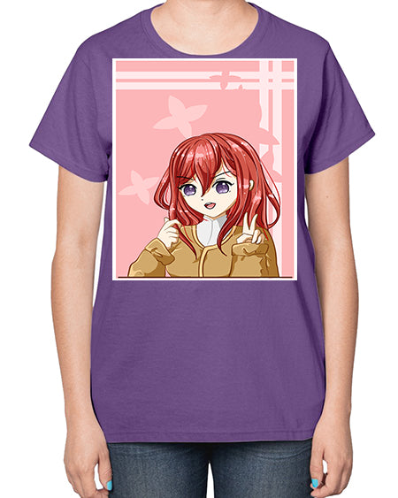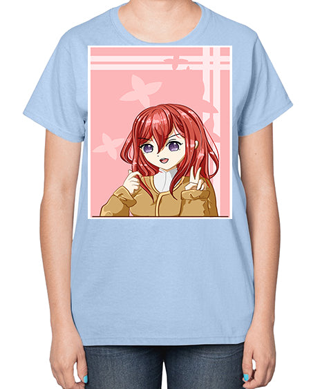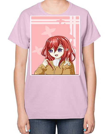 Beautiful and pretty little girl red long hair with 106# - anime- Ladies T-Shirt