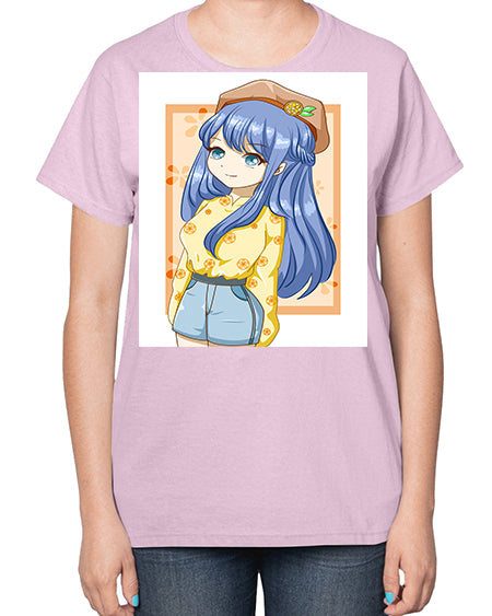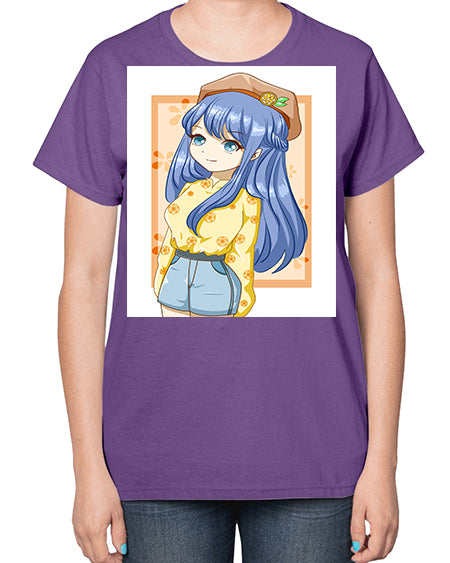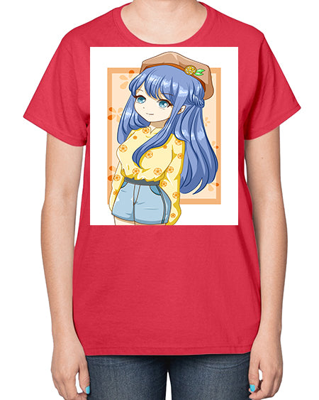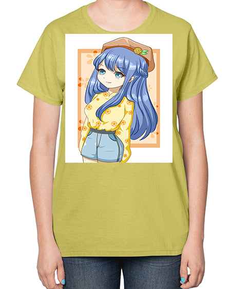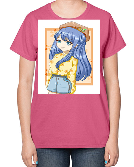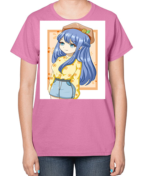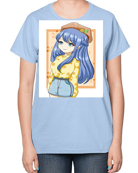 Beautiful and soft girl blue hair in summer 153# - anime- Ladies T-Shirt