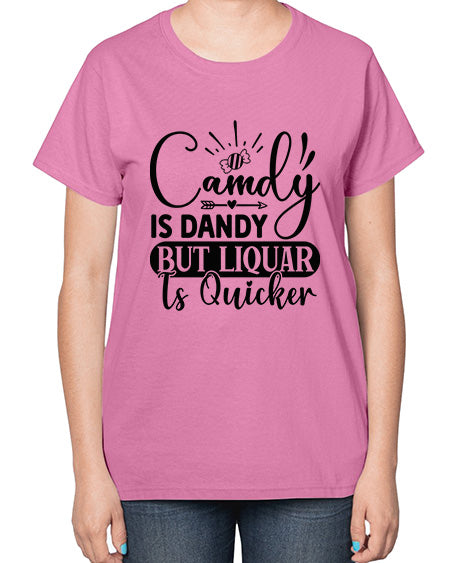 camdy is dandy but liquar is quicker 710# - wine- Ladies T-Shirt