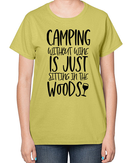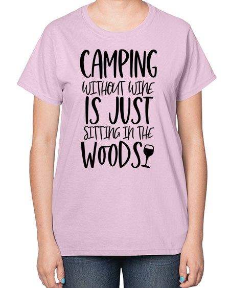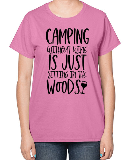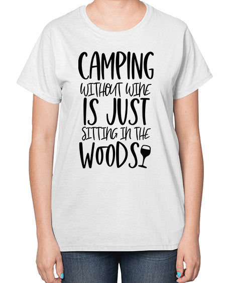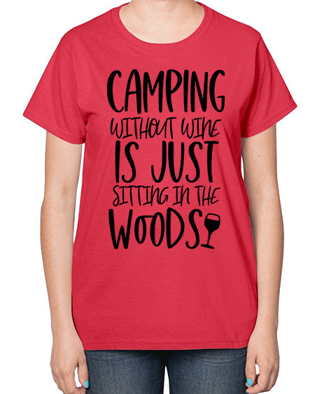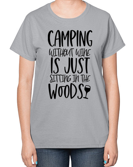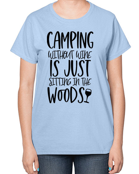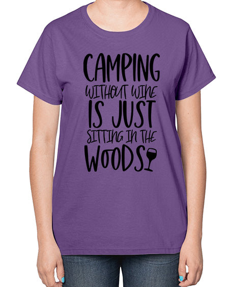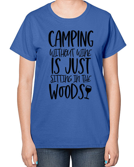 campingwithoutwineisjustsittinginthewoods 714# - wine- Ladies T-Shirt