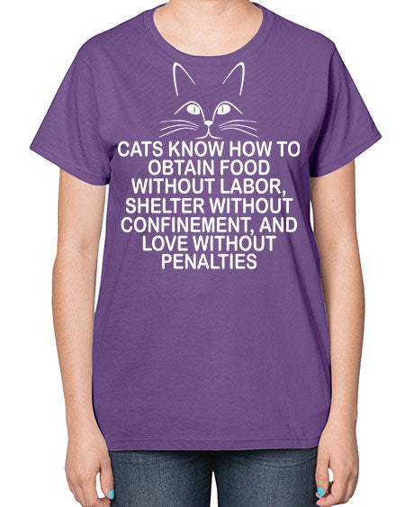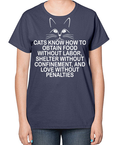 cats know how to obtain food without labor - cats- Ladies T-Shirt