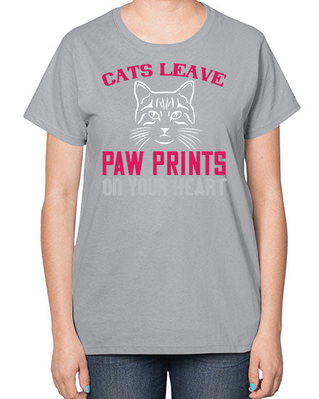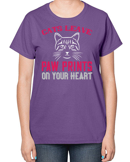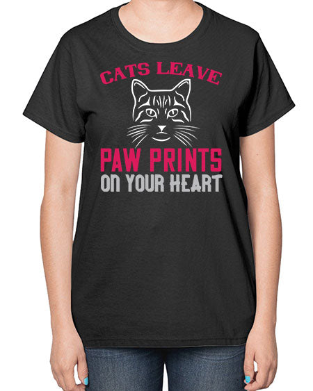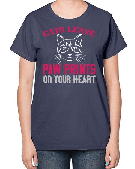 cats leave paw prints on your heart Style 39# - cats- Ladies T-Shirt