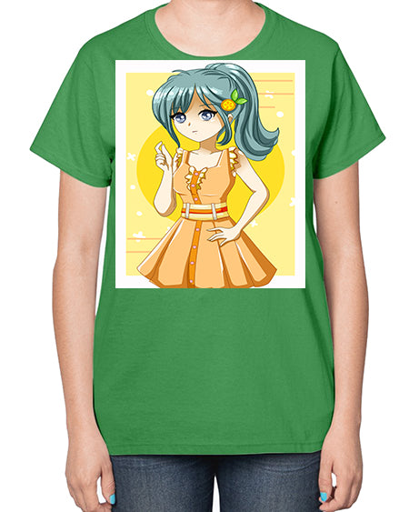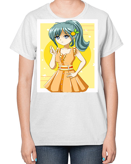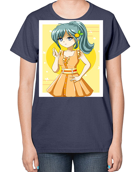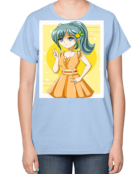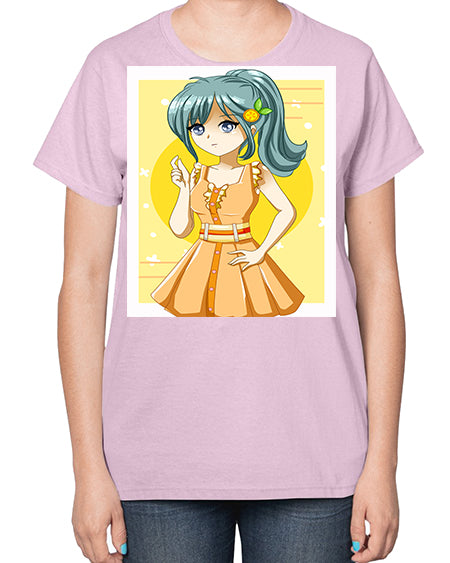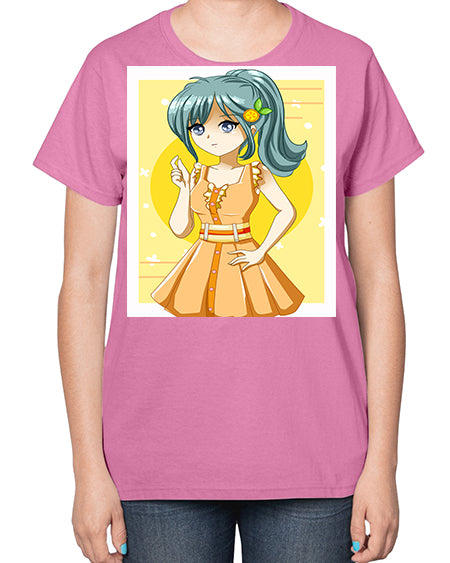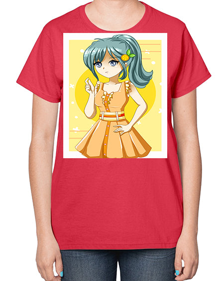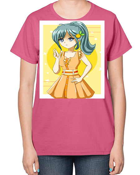 Cute and beautiful orange theme girl in summer 45# - anime- Ladies T-Shirt