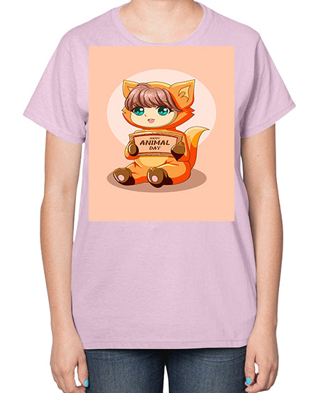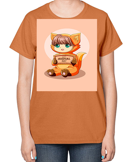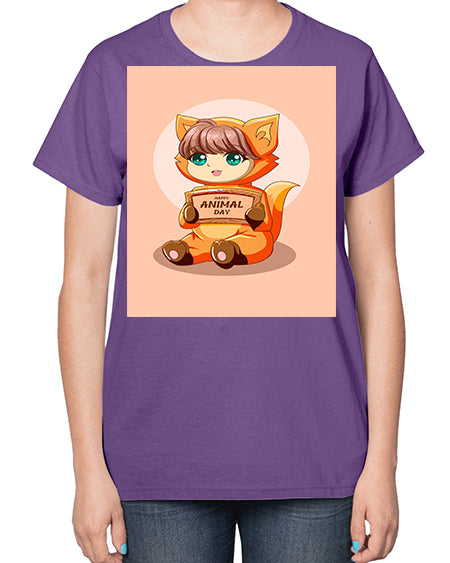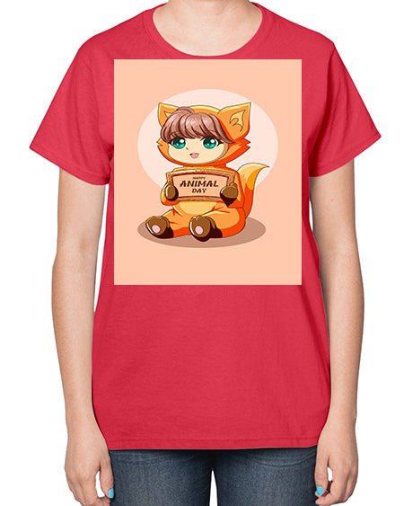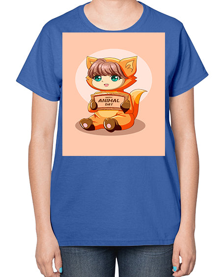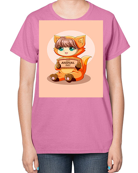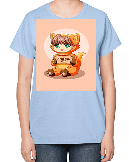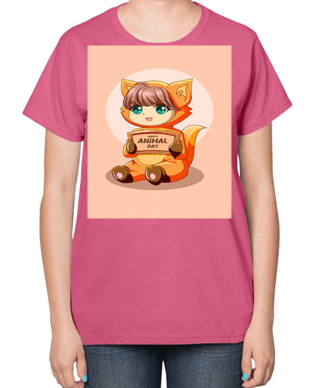 Cute girl with animal costume in animal day text 137# - anime- Ladies T-Shirt