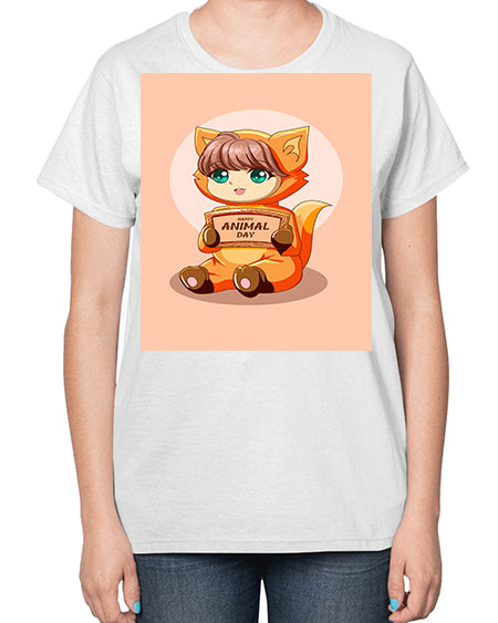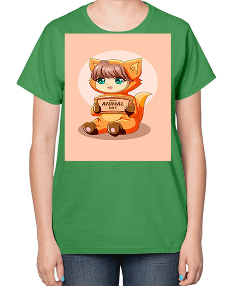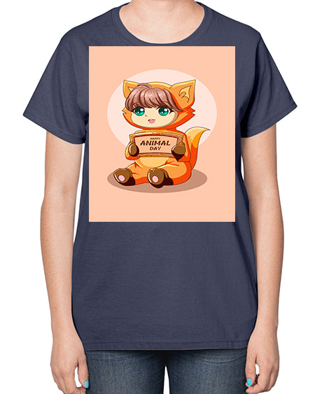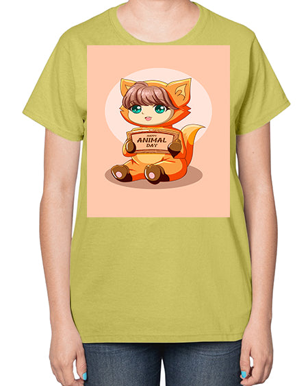 Cute girl with animal costume in animal day text 137# - Sub- Ladies T-Shirt