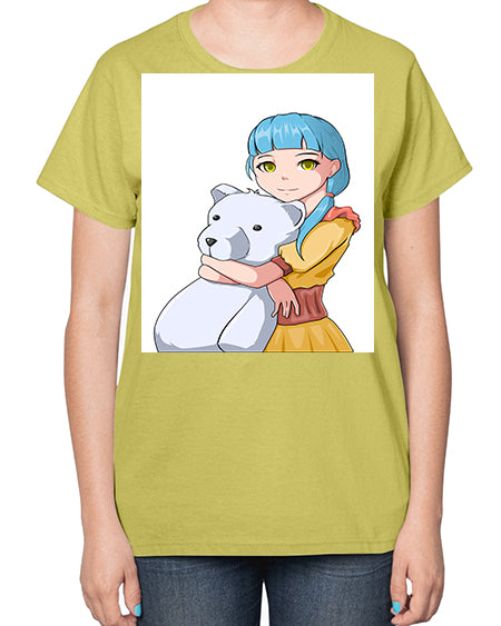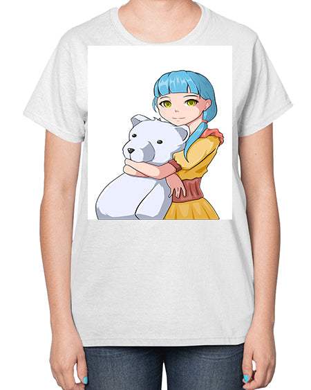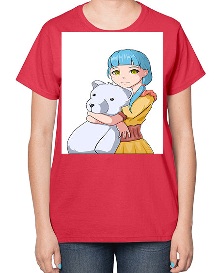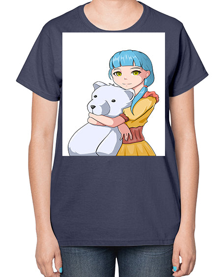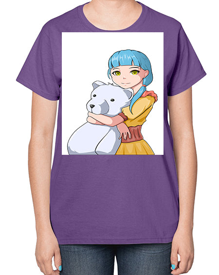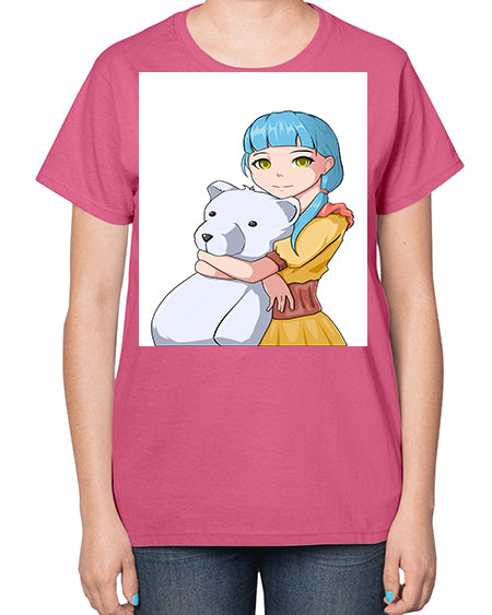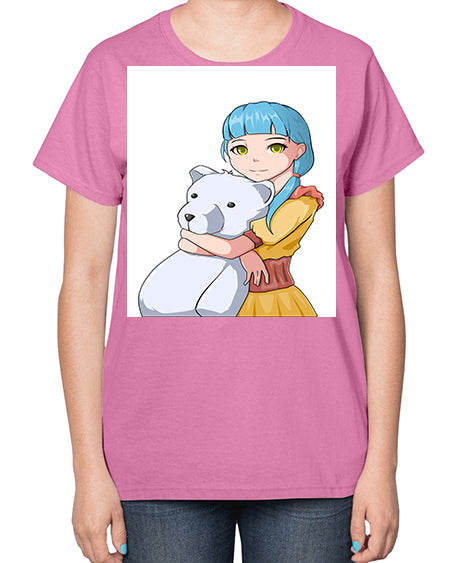 Cute girl with bear doll 26# - anime- Ladies T-Shirt