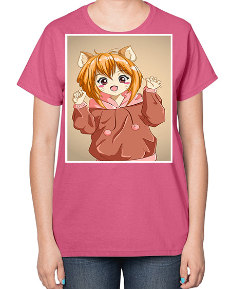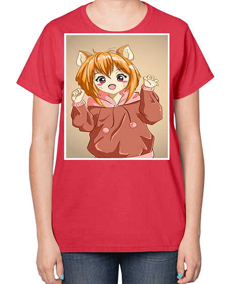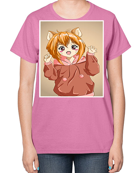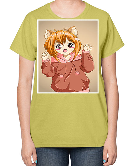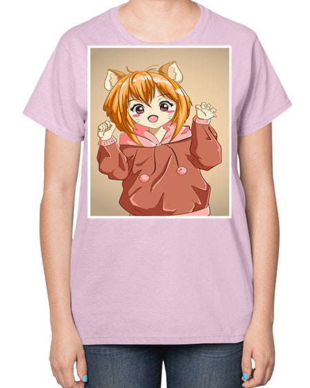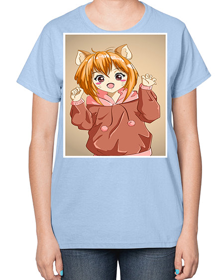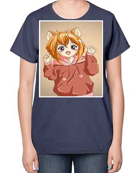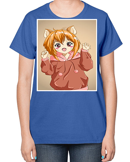 Cute little girl with accessories cat cartoon 170# - anime- Ladies T-Shirt
