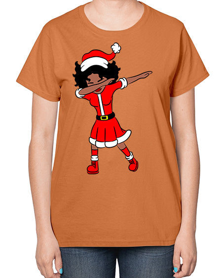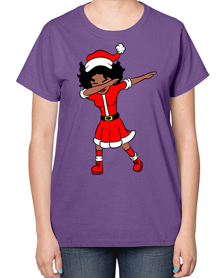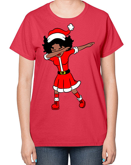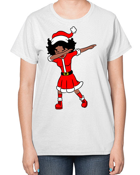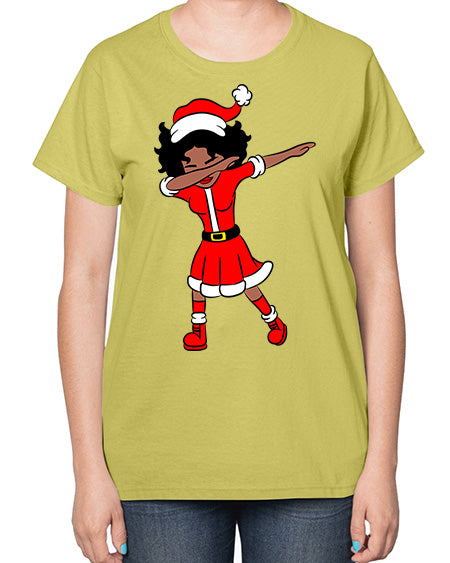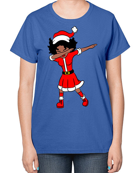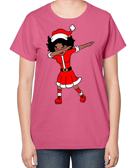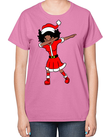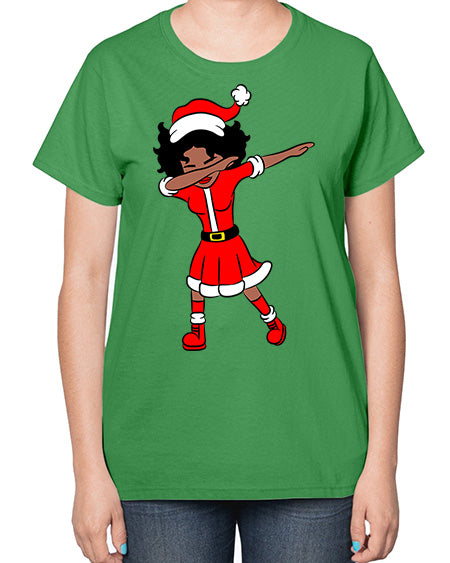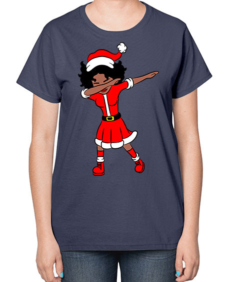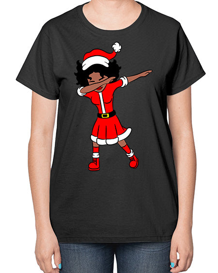 dabbing santa claus afro girl 50# - black girls or women- Ladies T-Shirt