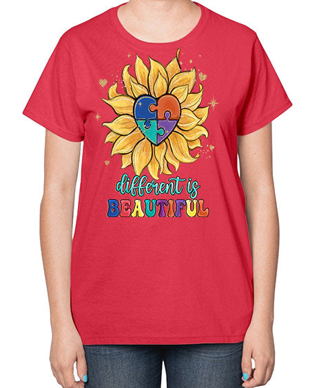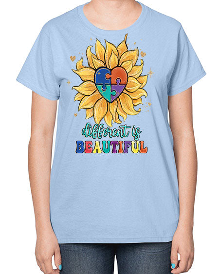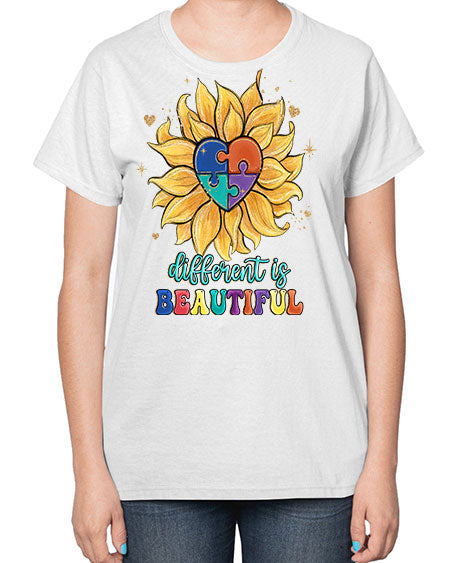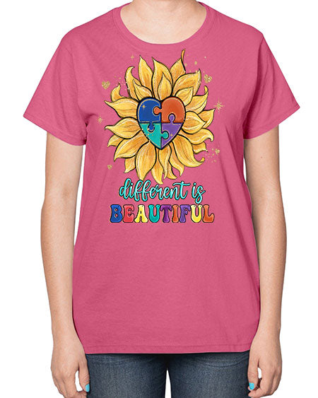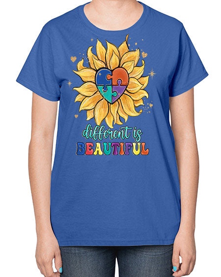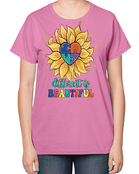 google-site-verification=jVrHOkW2AsgL_ozwUikqFQE6-Ke6U43Z8aLcUbXT5TE different is beautiful - autism- Ladies T-Shirt – Tshirt Unlimited