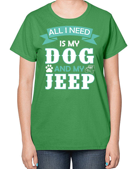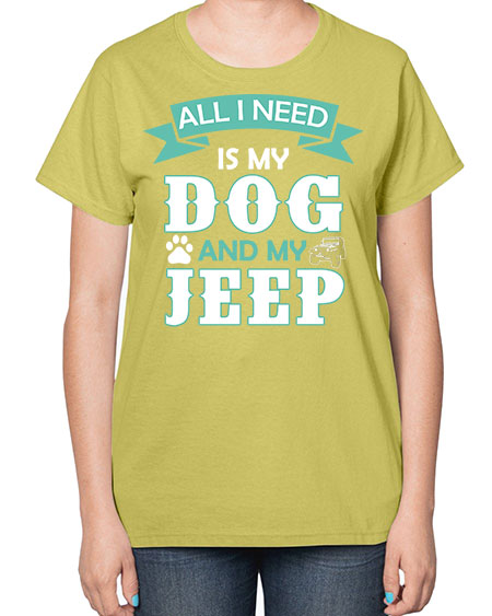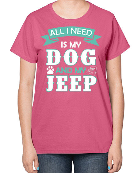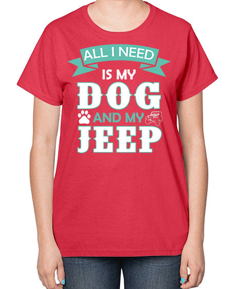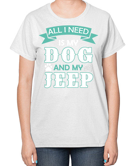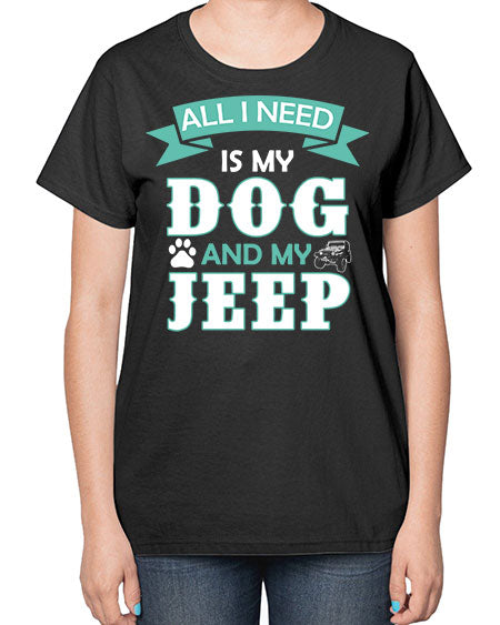 dog and jeep 74# - dogs- Ladies T-Shirt