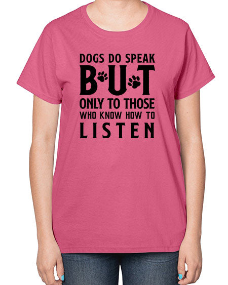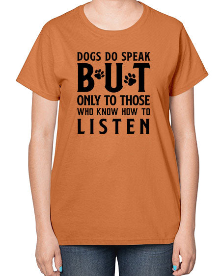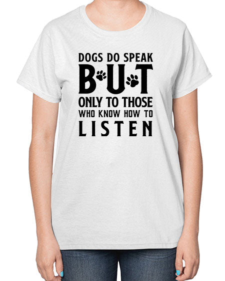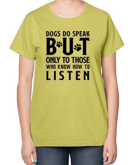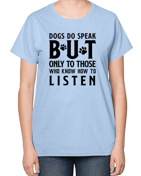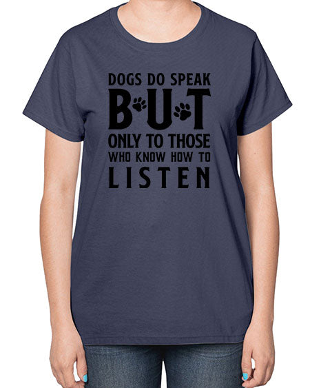 dogs do speak but only to those who know how to listen 131# - dogs- Ladies T-Shirt
