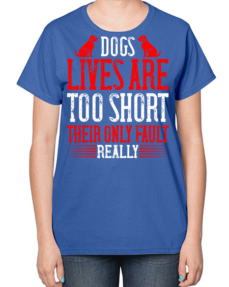 Dogs lives are too short Their only fault really Style 206# - dogs- Ladies T-Shirt Contoured fit, machine washable, cotton blend - Preshrunk jersey knit